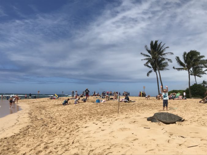 Große Schildkröte am Strand