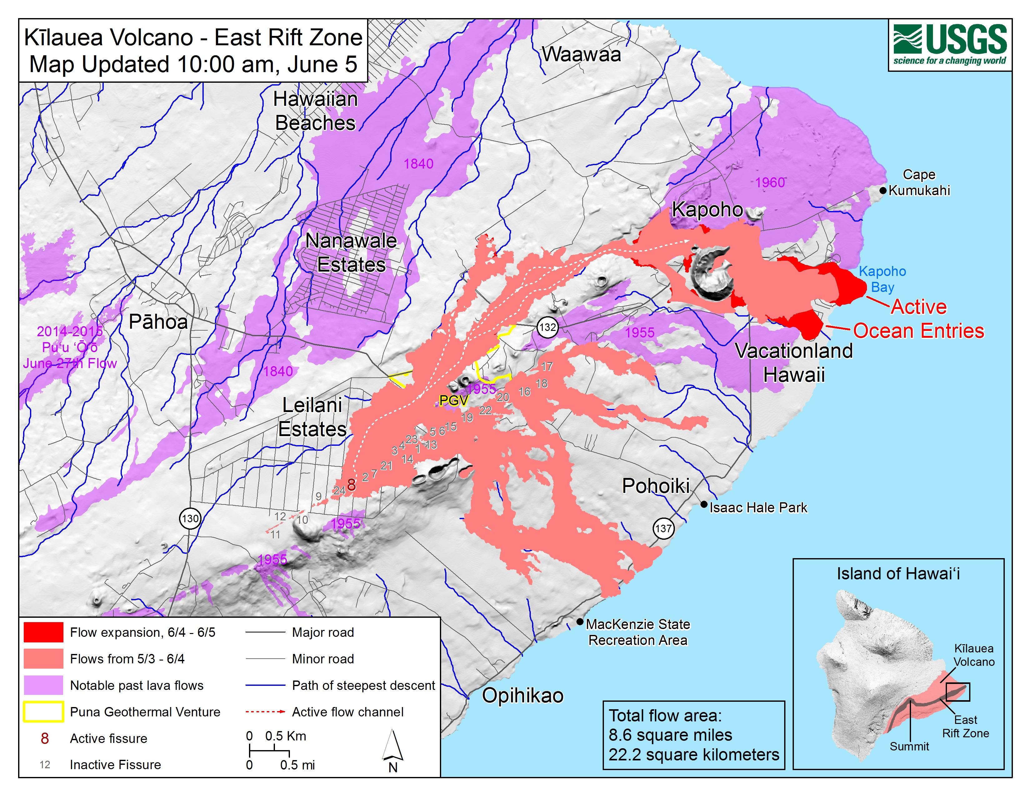 Ganz rechts steht „Vacationland Hawaii“ (wobei dunkelrot für aktive Lavaströme stehen) – da war unser Ferienhaus.