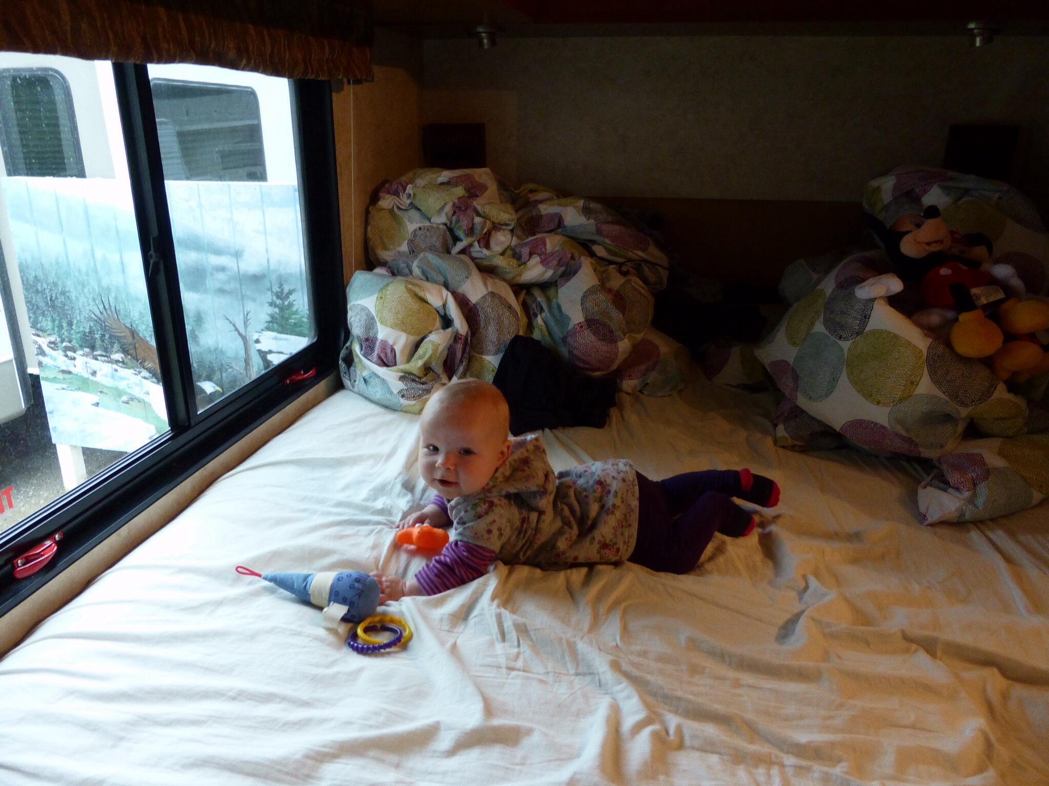 Laura himmelt Florian nun noch mehr an und Florian reagiert auf Lauras Befindlichkeiten und sowie sie außer Sicht ist, fragt er nach ihr. Ganz niedlich und einprägsam war für uns auch wie die beiden oben im Alkoven rumkicherten, weil sie sich ständig das Trennpolster zwischen Ihnen hin und her schoben obwohl sie schlafen sollten. Ich glaube, da können wir uns noch auf was gefasst machen in Zukunft mit den beiden Frechdachsen.