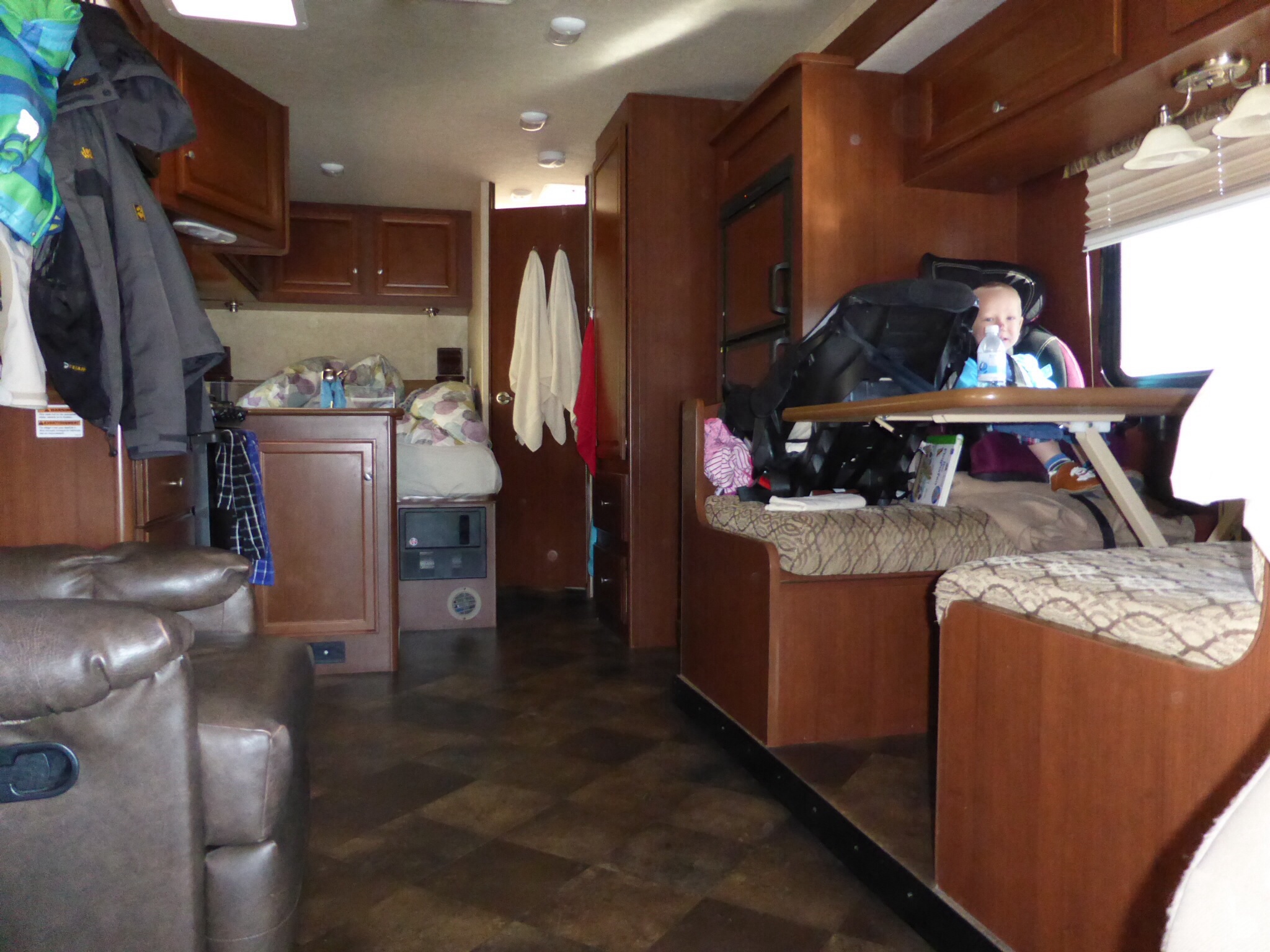 Die Antwort ist: Mit Planung und Organisation und dem Versuch flexibel zu bleiben. Schon im Vorfeld hatten wir uns gut überlegt wohin wir reisen: sicher, sauber, modern und englisch sprachig sollte es sein. Auch das Wohnmobil und die Ausstattung (z.B. Gas-Heizung damit wir es immer warm haben) haben wir mit Bedacht gewählt. Unser extra gekaufter Doppelkinderwagen hat sich auch bewährt. Wenn Floris Beine schlapp waren konnte auch er sich hinsetzen und sogar etwas liegend schlafen.