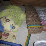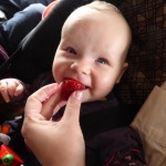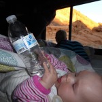 Unterwegs hatten wir immer einen großen Rucksack mit Wickelsachen, Trinken, Obst, Keksen, Brei und Strickjacken bei.