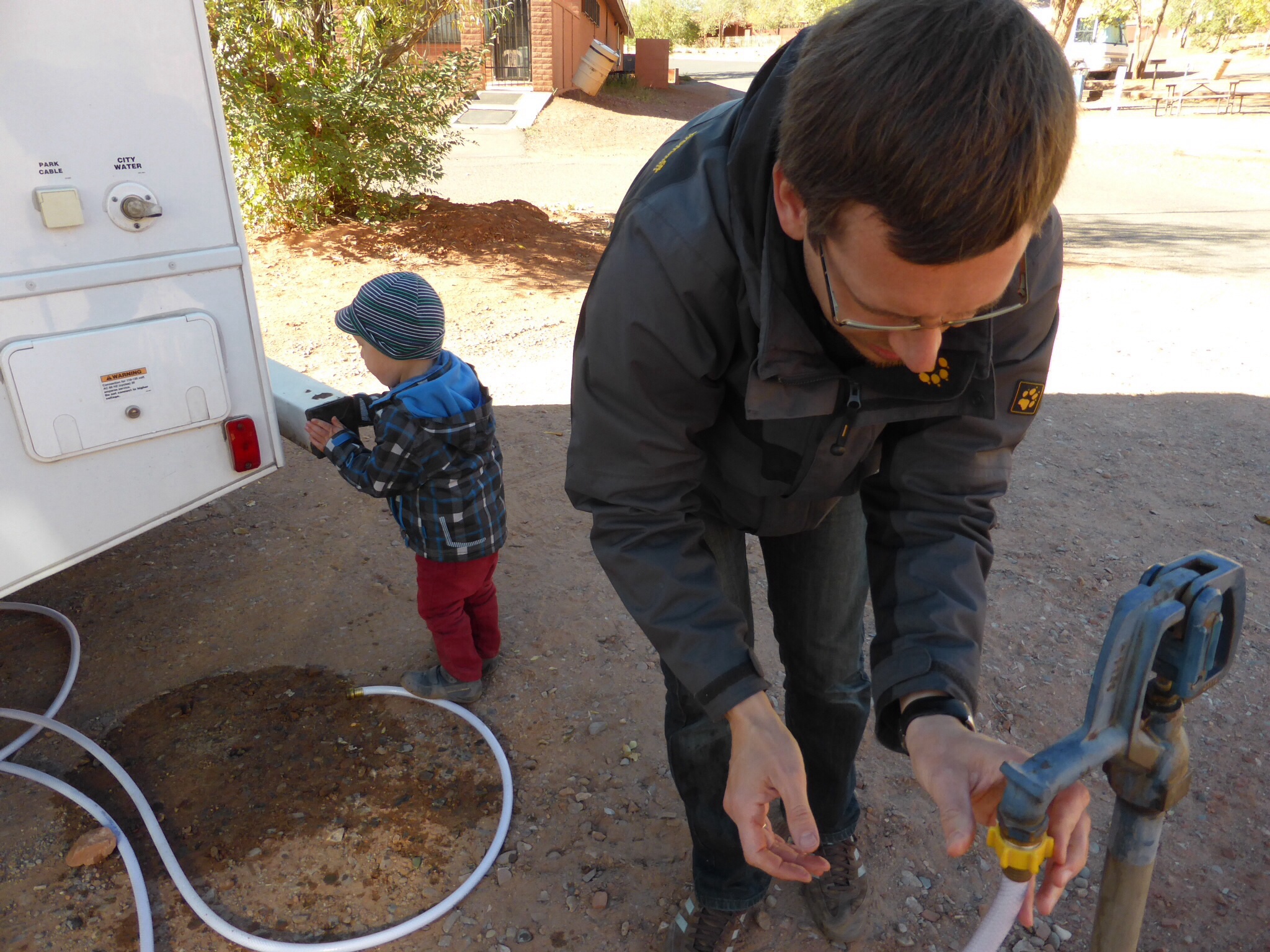 Unvergesslich was auch wie unser Kleiner mitgeholfen hat wie ein Großer, wenn es um die Wasserbetankung oder Wasserablassen des Wohnmobils ging. Oder wie er an jeder Tankstelle sehr wichtig mit dem Scheibenwischer um das Wohnmobil ging und alle Lampen und Blinker geputzt hat.