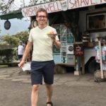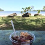 Immer wieder gibt es Farmers Markets, auf denen mindestens frisches Obst und Gemüse verkauft werden. Die haben wir gern genutzt, um z.B. reife Papayas zum guten Preis zu kaufen. Leider gibt es keine Mangos, weil diese erst Ende des Sommers Saison haben, genauso wie Lilikoi – Hawaiianisch für Passionsfrucht/Maracuja. Ansonsten ist es natürlich recht teuer hier. Zum Einen, weil Lebensmittel in den USA allgemein recht teuer sind (die Gehälter sind aber auch dementsprechend höher), zum Anderen, weil vieles nach Hawai’i gebracht werden muss. Naja, und weil der Tourist mit Geld herkommt und es bezahlt 😉