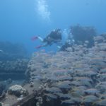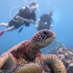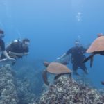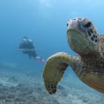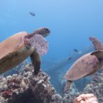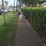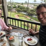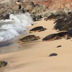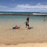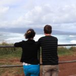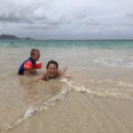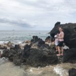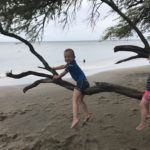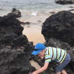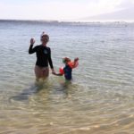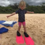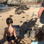 In Lahaina steuerten wir dann den Strand in der Nähe der Seebrücke an, an der Mathias gestern tauchen war. Mathias‘ Hoffnung war, beim Schnorcheln auch etwas in 7m Tiefe zu sehen. Da wir wegen der Kinder immer nur einzeln Schnorcheln gehen können und ich ein Angsthase bin (weit draußen, sehr tief, Wellen, ganz allein, Haie… reicht doch, oder?), hat nur Mathias dort nochmal Schildkröten gesehen. Die Kinder spielten schön am Strand und im Wasser bevor wir in der Hafenregion von Lahaina noch ein Eis aßen und etwas umherschlenderten – soweit man das mit Kinder so nennen kann. Es ist wirklich immer wieder erstaunlich, wie am Strand die Sonne scheint und in den Bergen die (Regen-)Wolken hängen…
