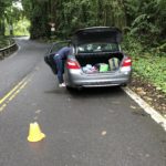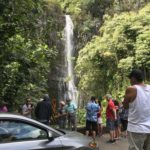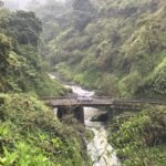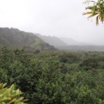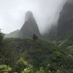 Heute ging es mal wieder gen Norden. Wir wollten das Iao Valley besuchen und dort etwas wandern. Die angekündigte Wanderung von ca. 30min entpuppte sich als höchstens 10min., was bei dem Regen aber nicht so schade war. An jedem anderen Tag sieht es dort aber genauso aus – denn es ist einer der regenreichsten Orte Hawaiis. Die Ausblicke waren trotzdem schön und die tiefhängenden Wolken verliehen dem Ort etwas mystisches. Sehr passend, denn in diesem Tal wurden früher die Könige an geheimen Orten begraben und die Iao Needle (der steile Berg mittig) wurde als riesiger Altar benutzt.