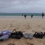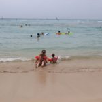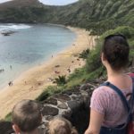 Für meinen Geburtstag hatten wir die Schnorchelbucht Hanauma Bay geplant. Obwohl diese nur begrenzte Parkplätze hat und begrenzt Besucher pro Tag zulässt und angeblich schon um halb 8 morgens dicht sein kann, haben wir noch schön gefrühstückt inkl. Apple Pie mit Sahne. Als wir dann gegen halb 9 dort waren (ja die Kinder wachen immernoch recht zeitig auf 😉 ), bekamen wir aber noch einen der letzten Parkplätze. Man muss auch mal Glück haben. Und Glück hatten wir auch mit dem Wetter. Wo es anfangs noch grau war und tröpfelte (deshalb wahrscheinlich noch den Parkplatz bekommen), genossen wir 6 Stunden puren Sonnenschein.