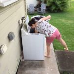 - Laura steckt die Füße ins Wasser
