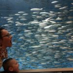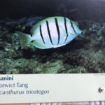 Und wieder war es, als wäre die Umgebung aus einem Hochglanzreisemagazin – nur eben wieder mit vielen Touristen. Die Fische schien das nicht sehr zu stören. Schon im Spülsaum waren sie unterwegs. Mathias und ich wechselten uns im Schnorchel/Kinderdienst ab. Beim Blick unter Wasser (an den richtigen Stellen) dachte man tatsächlich, man wäre mittendrin in einem Aquarium. Teilweise tummelten sich bis zu ca. 30 Fische verschiedenster bunter Sorten in greifbarer Nähe. Und da es am Vormittag im vorderen Teil wellentechnisch recht ruhig war und zum großen Teil flach, konnte sogar Flori dies miterschnorcheln. Er war total begeistert und sagte da wären ja alle Monterey Aquarien zusammengeschüttet worden und wir mittendrin. 🙂 (Ich habe mal von den Schautafeln einige von den gesehenen abfotografiert.)
