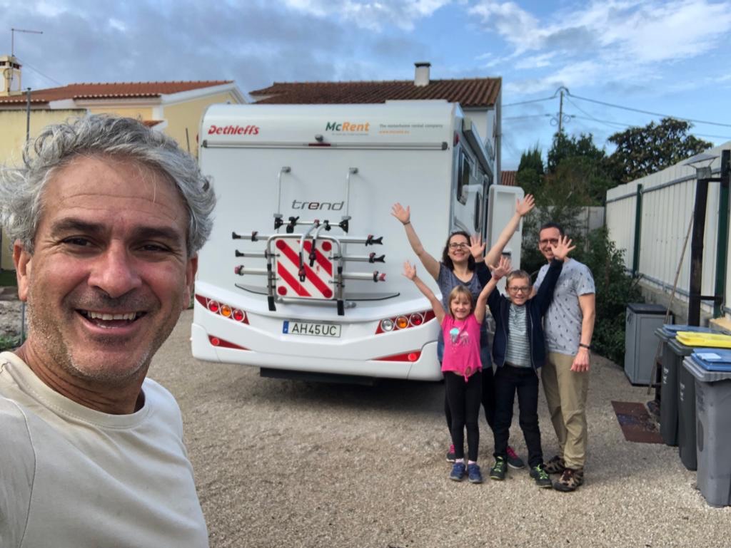 Unsere erste Fahrt führte uns gleich zu ALDI in der Nachbarschaft, da der Verkehr um halb Sechs ordentlich im ganze Gange war und wir die Zeit besser nutzen wollten. Mit dem Nötigsten ausgetattet ging es dann eine gute Stunde gen Süden. Über die Autobahnen Lissabons kamen wir teils im Stau zur großen Brücke Ponte 25 de Abril, die uns über den Tajo führte. Im Dunkeln, nach 20 Uhr, kam wir bei unser ersten Unterkunft an: Ein Stellplatz auf dem privaten Grundstück von Paulo. Er hatte noch eine Ferienwohnung und zwei weitere WoMo-Stellplätze. Nach einem schnellen Abendessen ging es dann k.o. ins Bett.