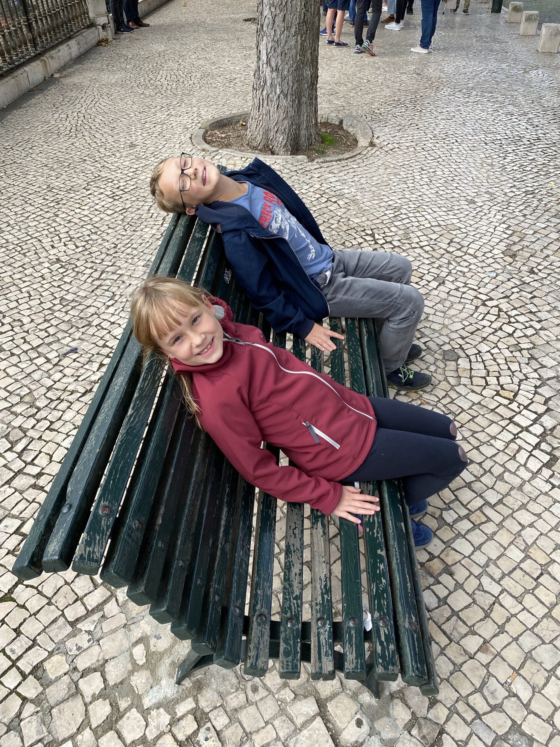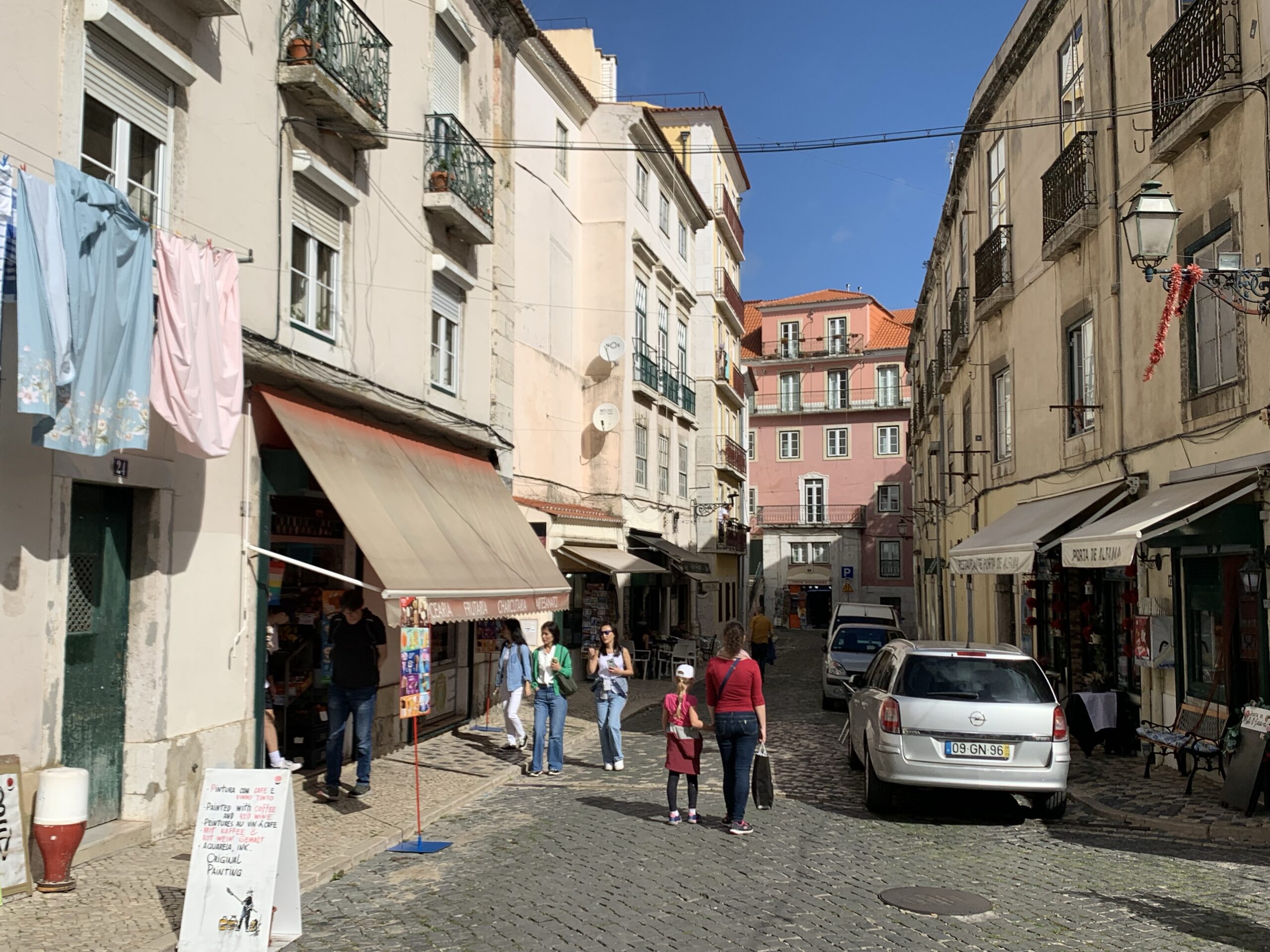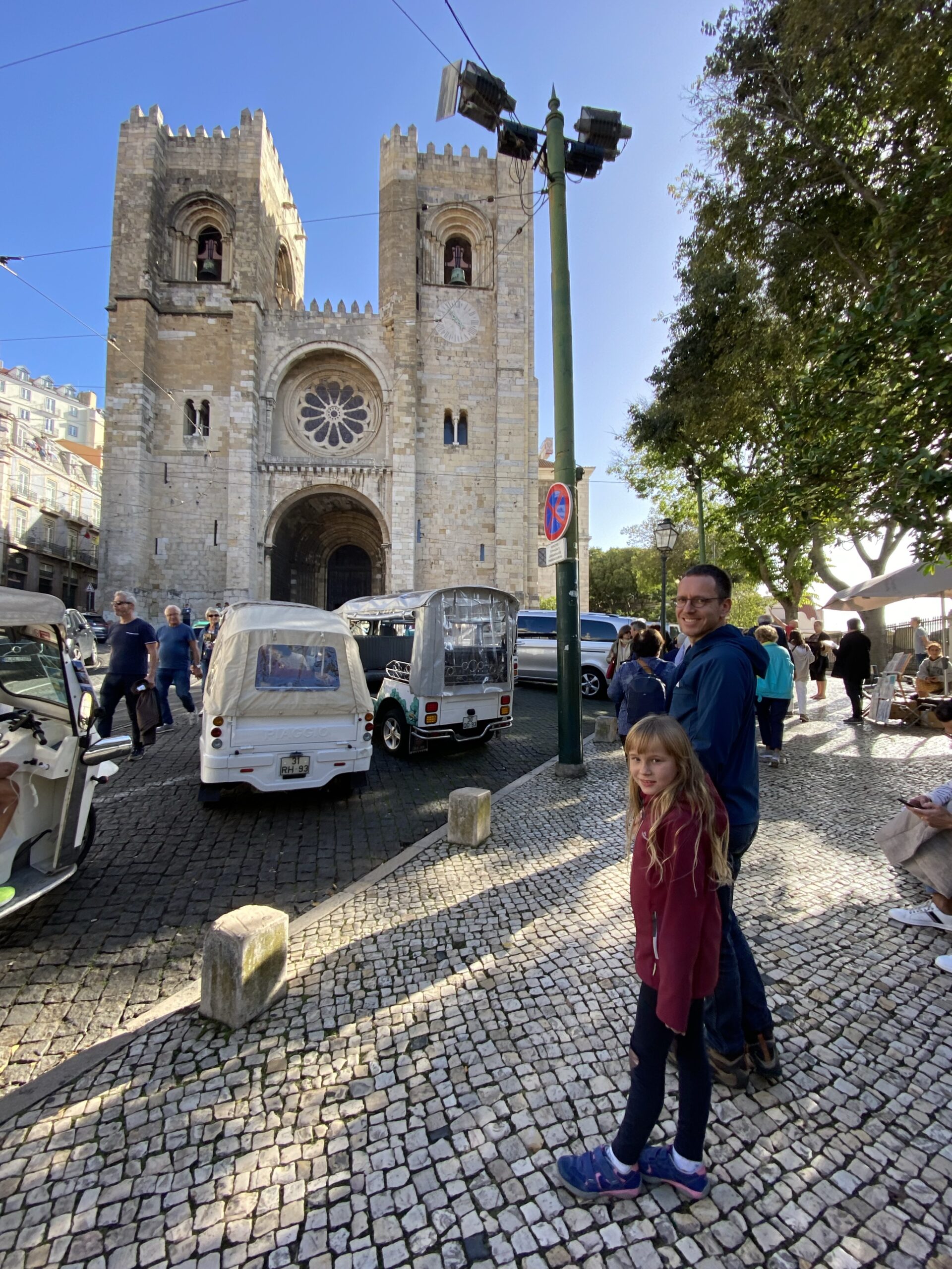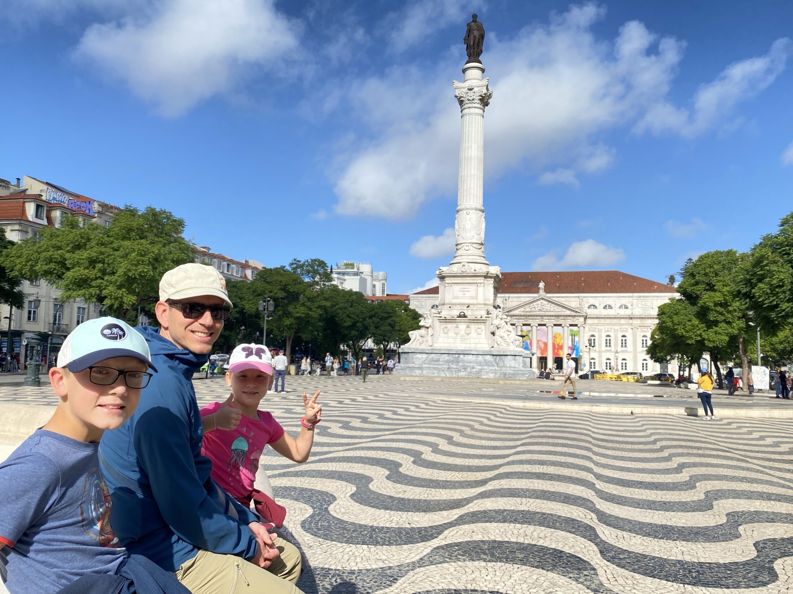 Da wir am Dienstag das Wohnmobil erst nachmittags in Empfang nehmen konnten, verbachten wir den Vormittag noch einmal in Lissabon. Nach einem leckeren Frühstück in einem Café um die Ecke ging es ein wenig shoppen. Unsere Spazierrunde führte uns noch zum Platz Praça Dom Pedro IV, den bisher nur Mathias bei Nacht gesehen hatte, bzw. wir alle vom Aussichtsturm. Weiter ging es in die historische Altstadt mit ihren engen, verwinkelten Gassen. Die Altstadt, in der unsere Ferienwohnung lag, war schon nicht mehr ganz so alt und deutlich strukturierter mit langen geraden Straßen. Nach einem etwas kleineren Mittagessen ging es dann mit dem Taxi zum Wohnmobilverleiher.