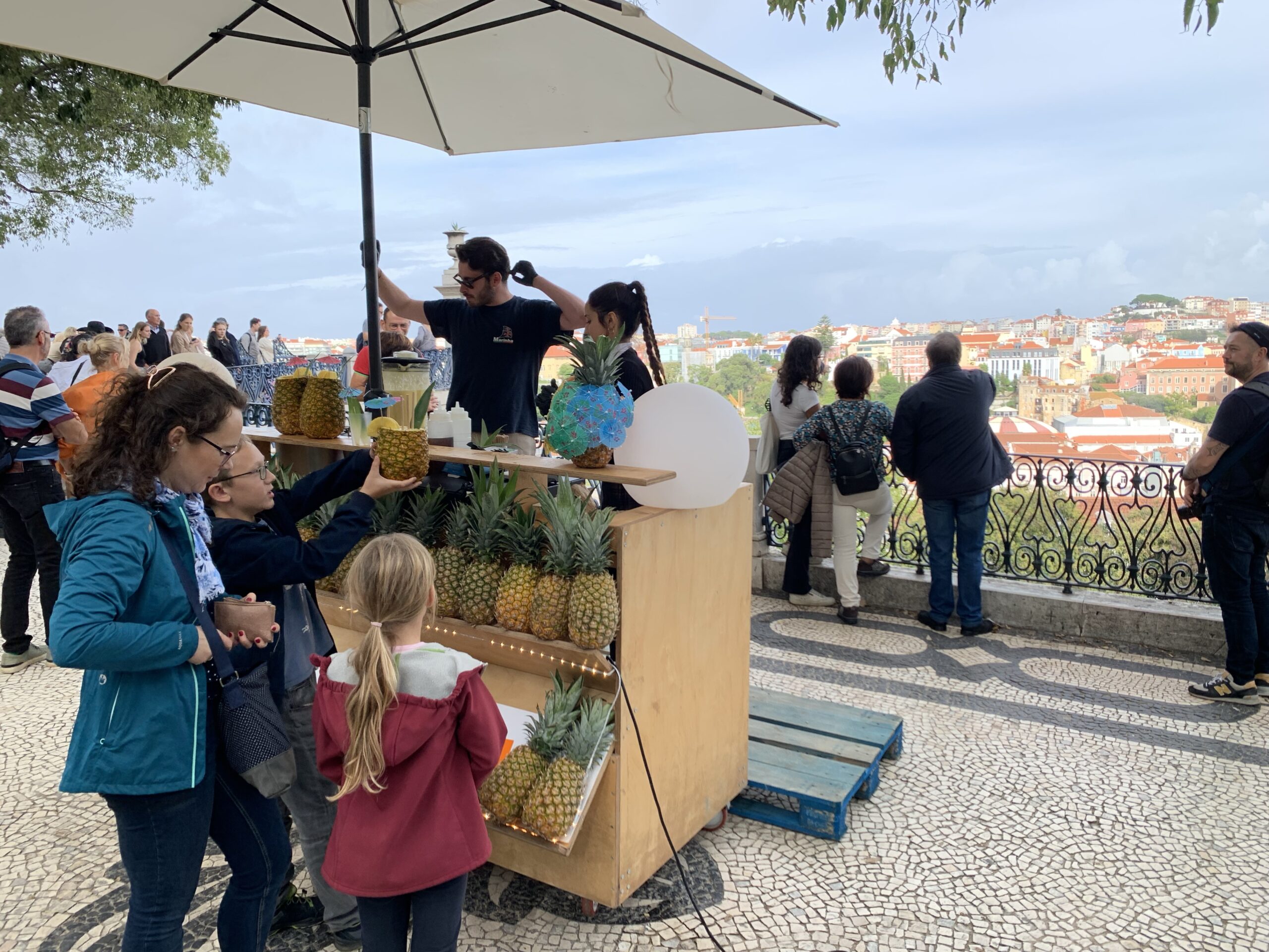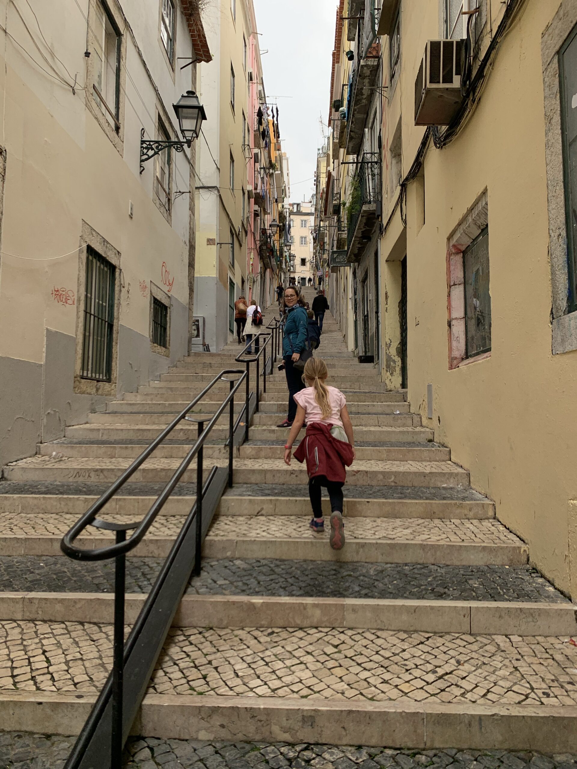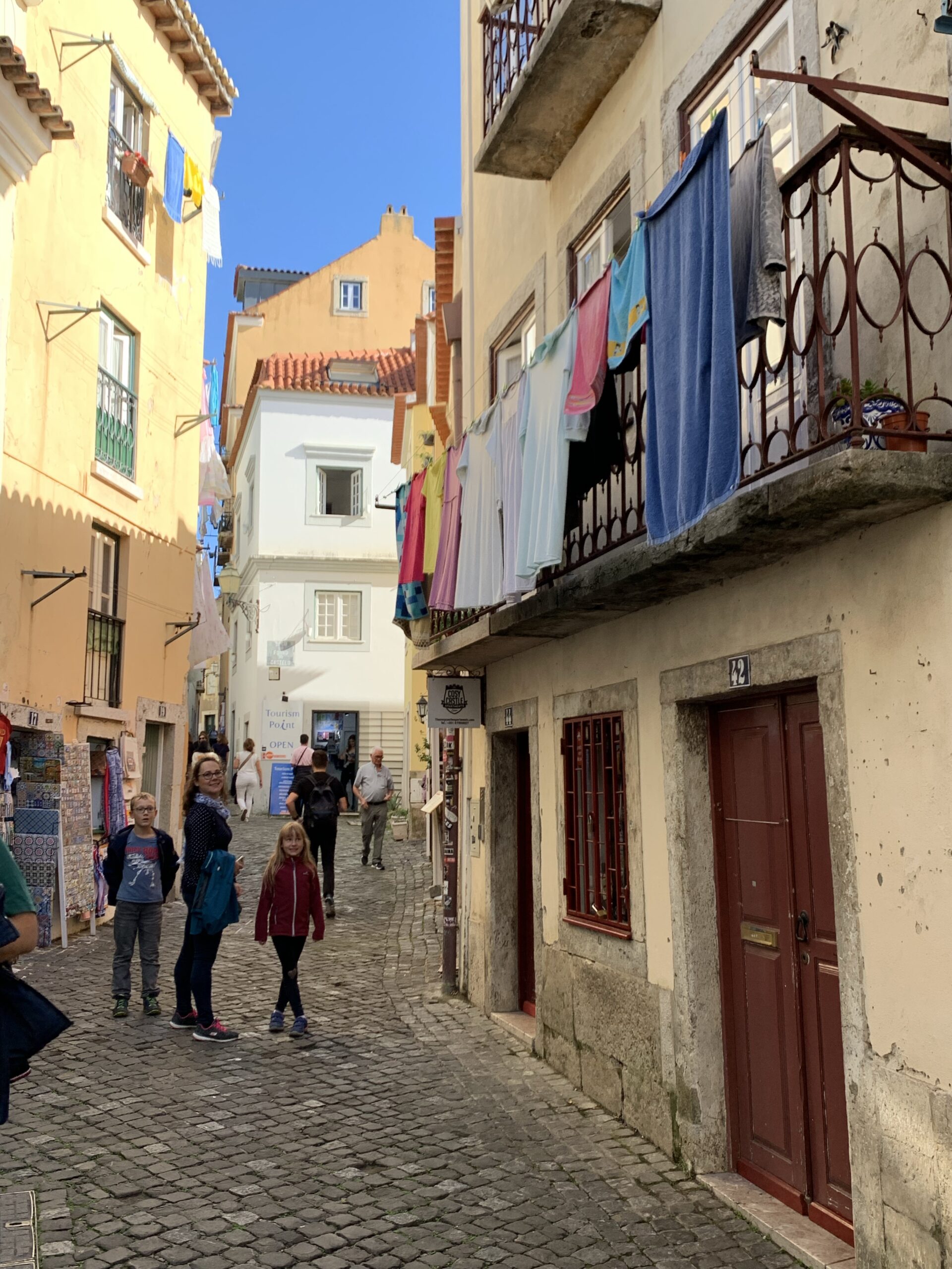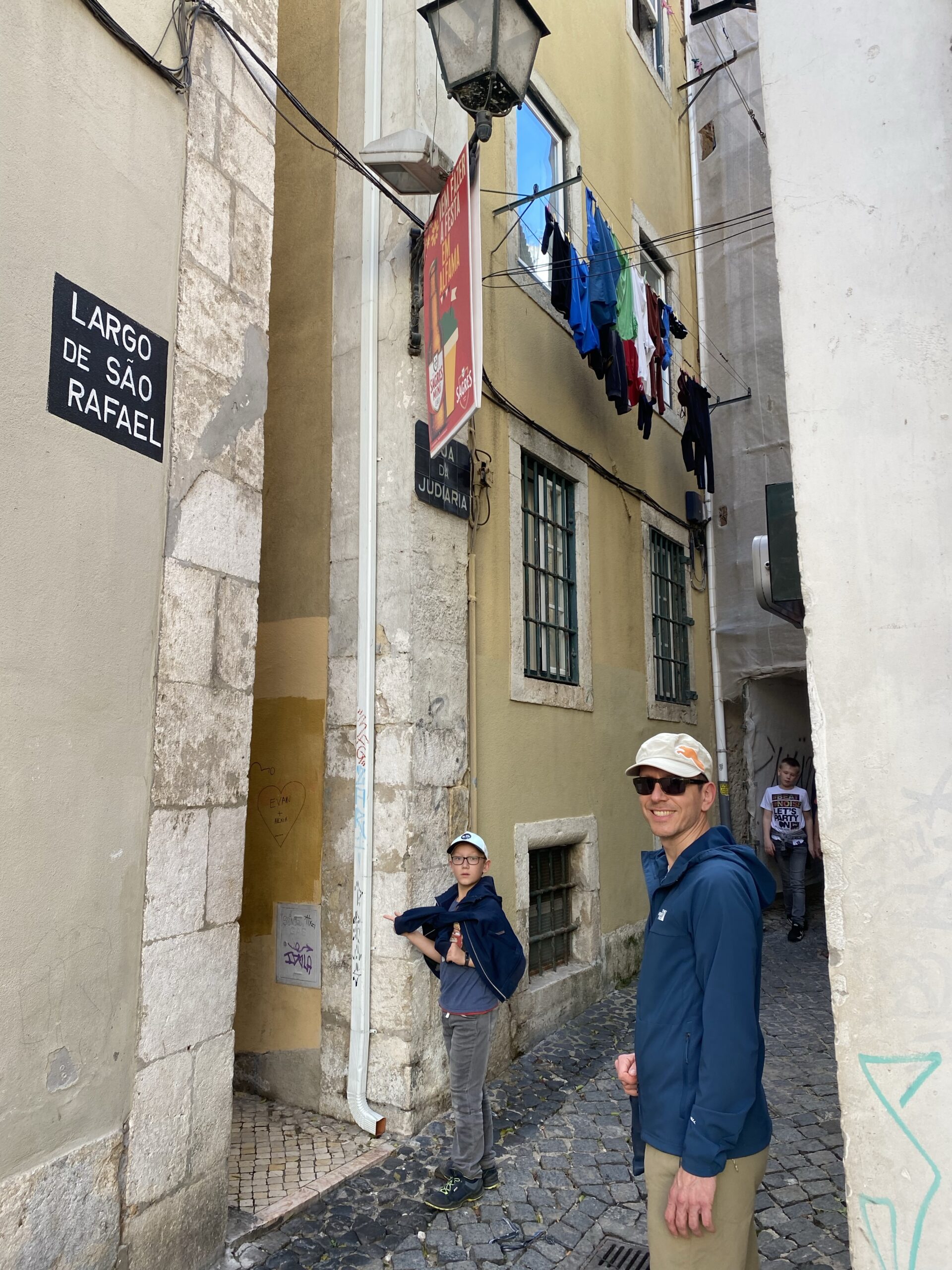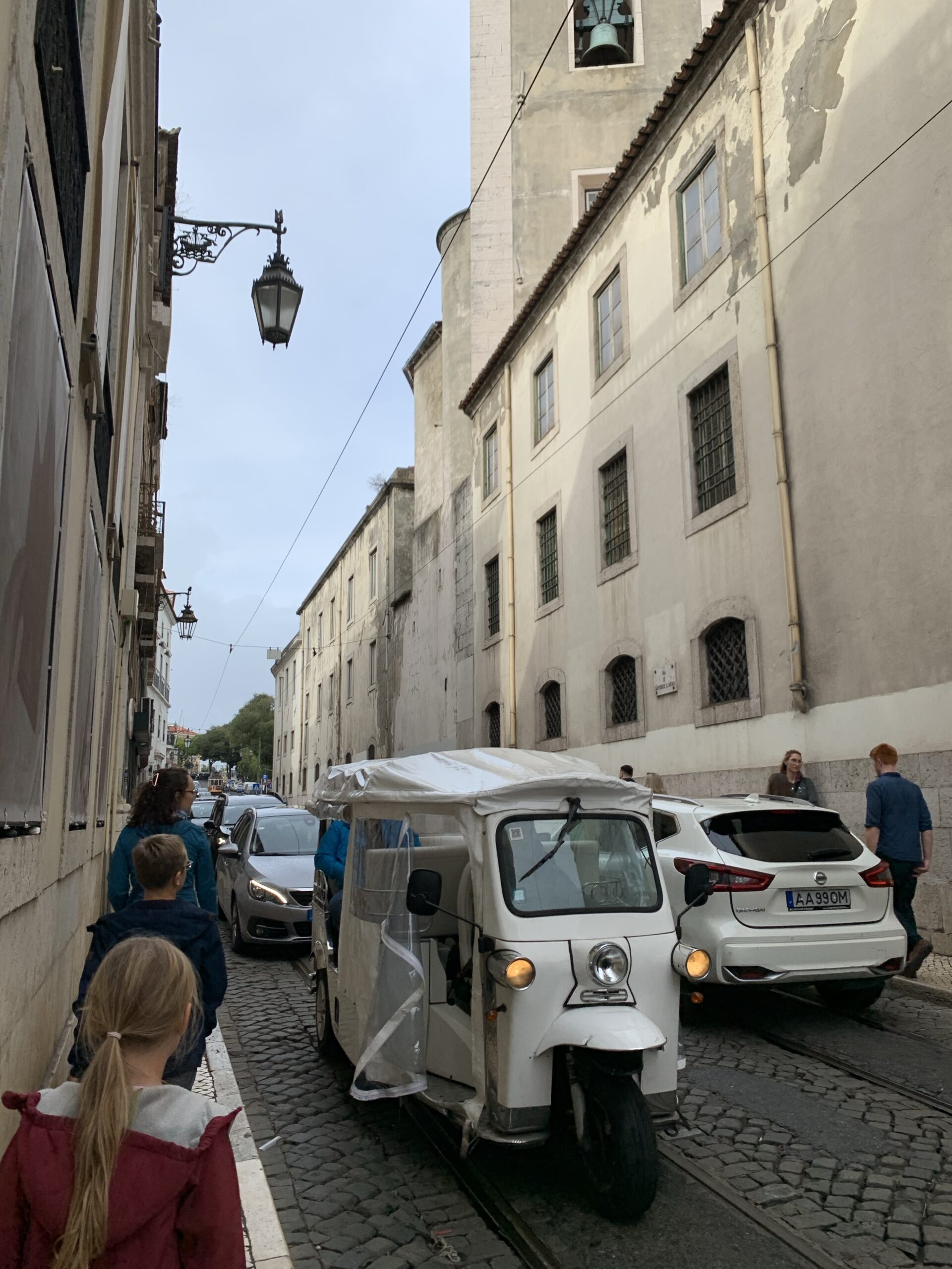 Da wir am Dienstag das Wohnmobil erst nachmittags in Empfang nehmen konnten, verbachten wir den Vormittag noch einmal in Lissabon. Nach einem leckeren Frühstück in einem Café um die Ecke ging es ein wenig shoppen. Unsere Spazierrunde führte uns noch zum Platz Praça Dom Pedro IV, den bisher nur Mathias bei Nacht gesehen hatte, bzw. wir alle vom Aussichtsturm. Weiter ging es in die historische Altstadt mit ihren engen, verwinkelten Gassen. Die Altstadt, in der unsere Ferienwohnung lag, war schon nicht mehr ganz so alt und deutlich strukturierter mit langen geraden Straßen. Nach einem etwas kleineren Mittagessen ging es dann mit dem Taxi zum Wohnmobilverleiher.
