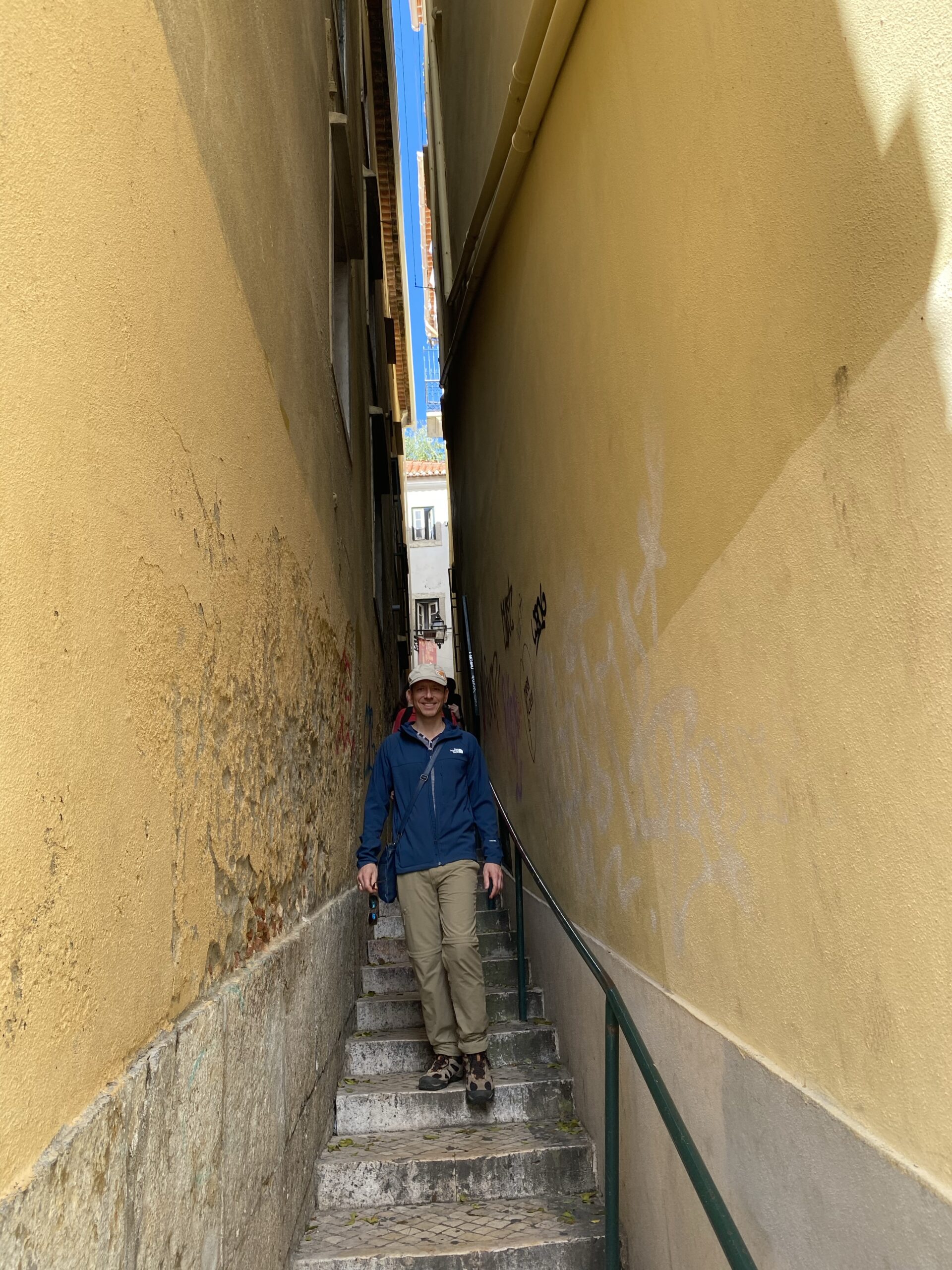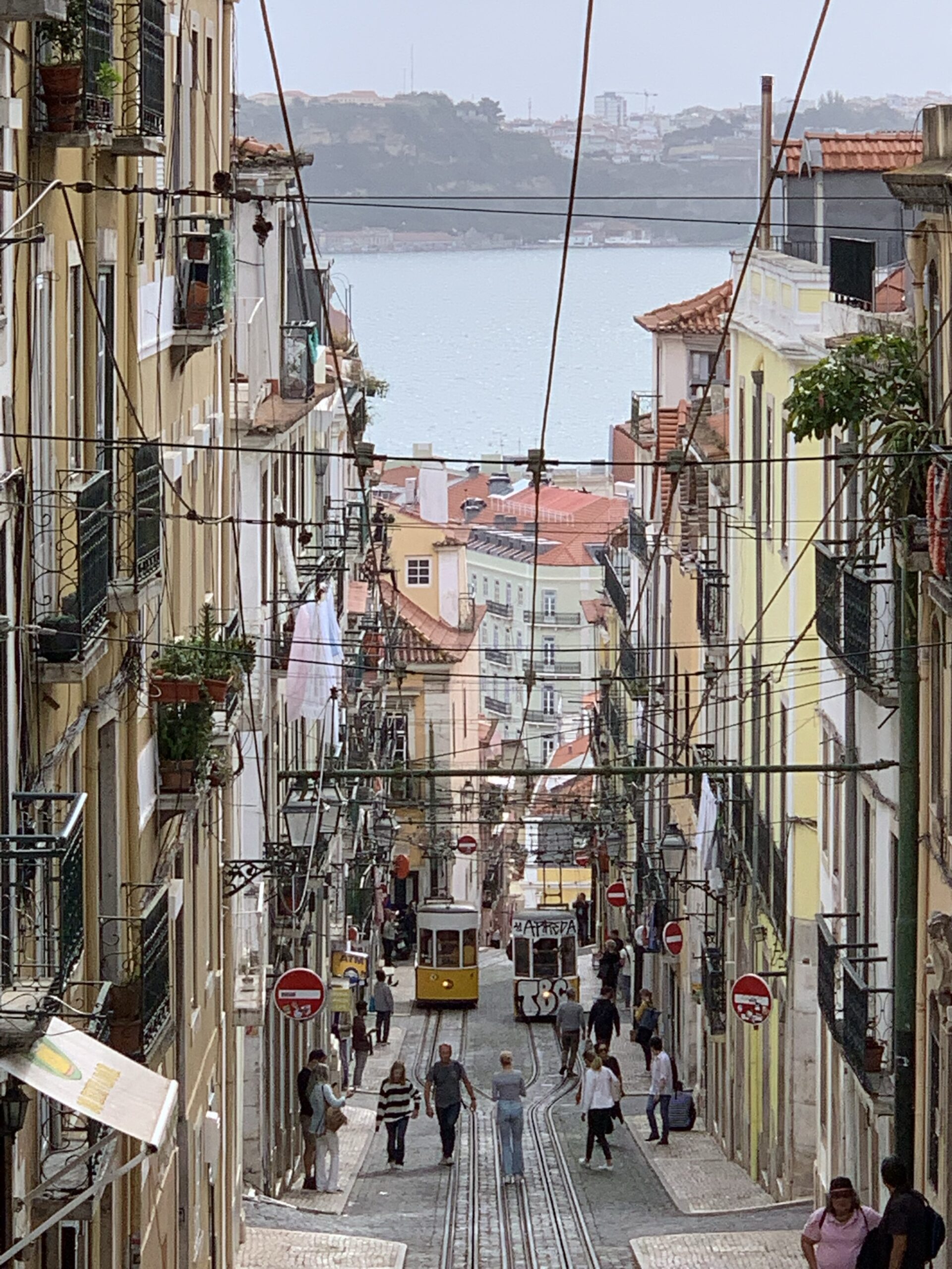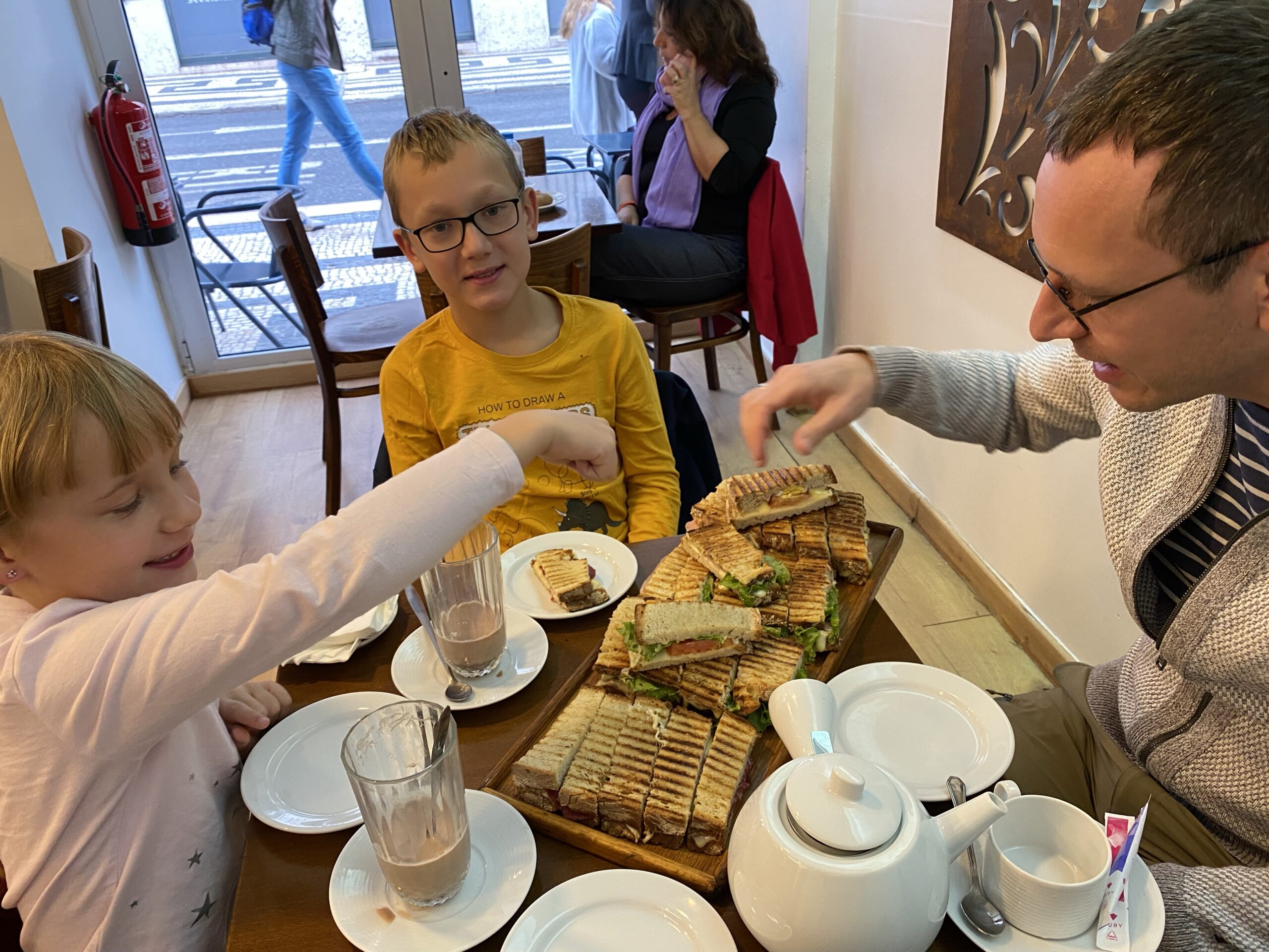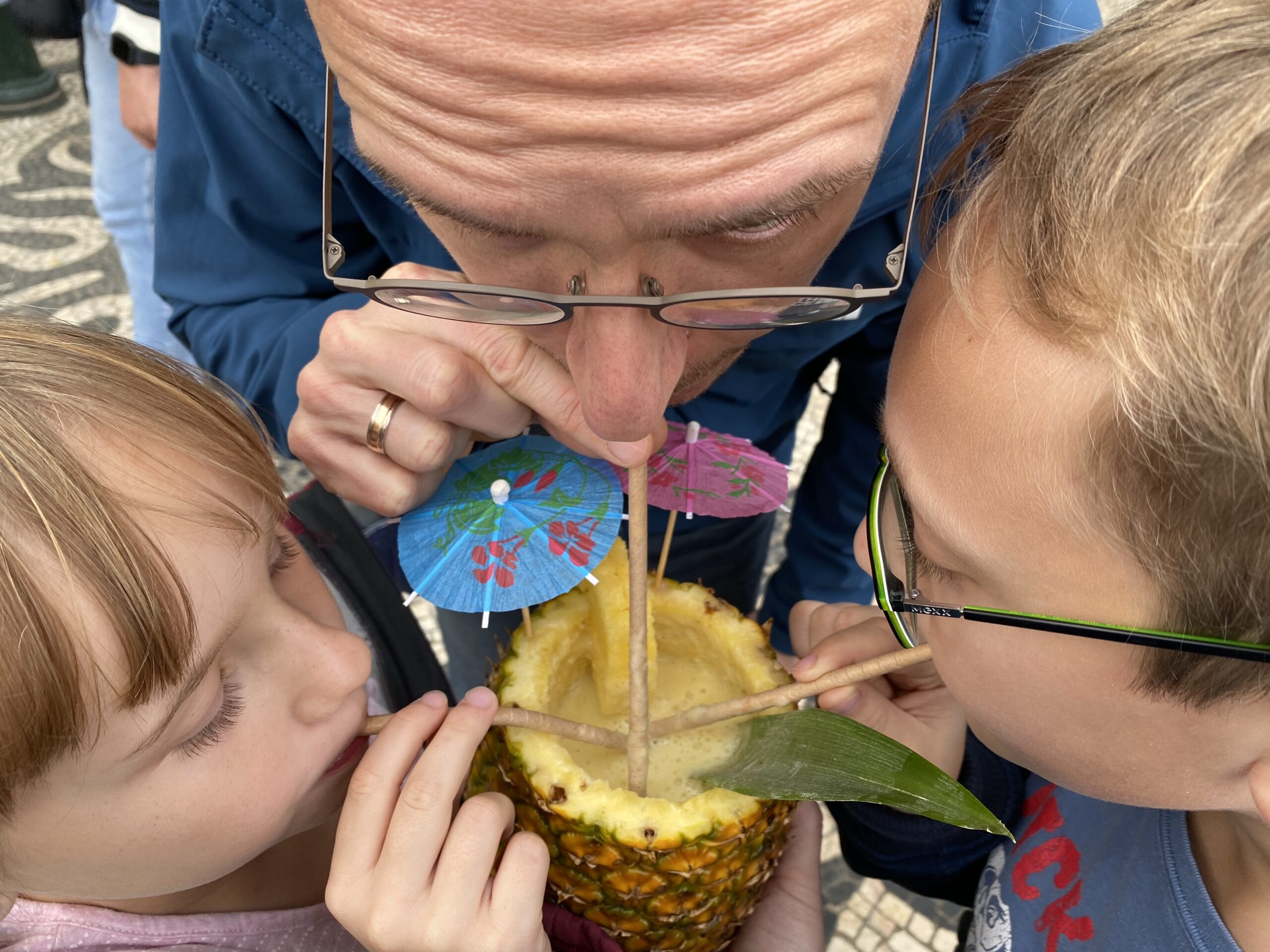 Da wir am Dienstag das Wohnmobil erst nachmittags in Empfang nehmen konnten, verbachten wir den Vormittag noch einmal in Lissabon. Nach einem leckeren Frühstück in einem Café um die Ecke ging es ein wenig shoppen. Unsere Spazierrunde führte uns noch zum Platz Praça Dom Pedro IV, den bisher nur Mathias bei Nacht gesehen hatte, bzw. wir alle vom Aussichtsturm. Weiter ging es in die historische Altstadt mit ihren engen, verwinkelten Gassen. Die Altstadt, in der unsere Ferienwohnung lag, war schon nicht mehr ganz so alt und deutlich strukturierter mit langen geraden Straßen. Nach einem etwas kleineren Mittagessen ging es dann mit dem Taxi zum Wohnmobilverleiher.