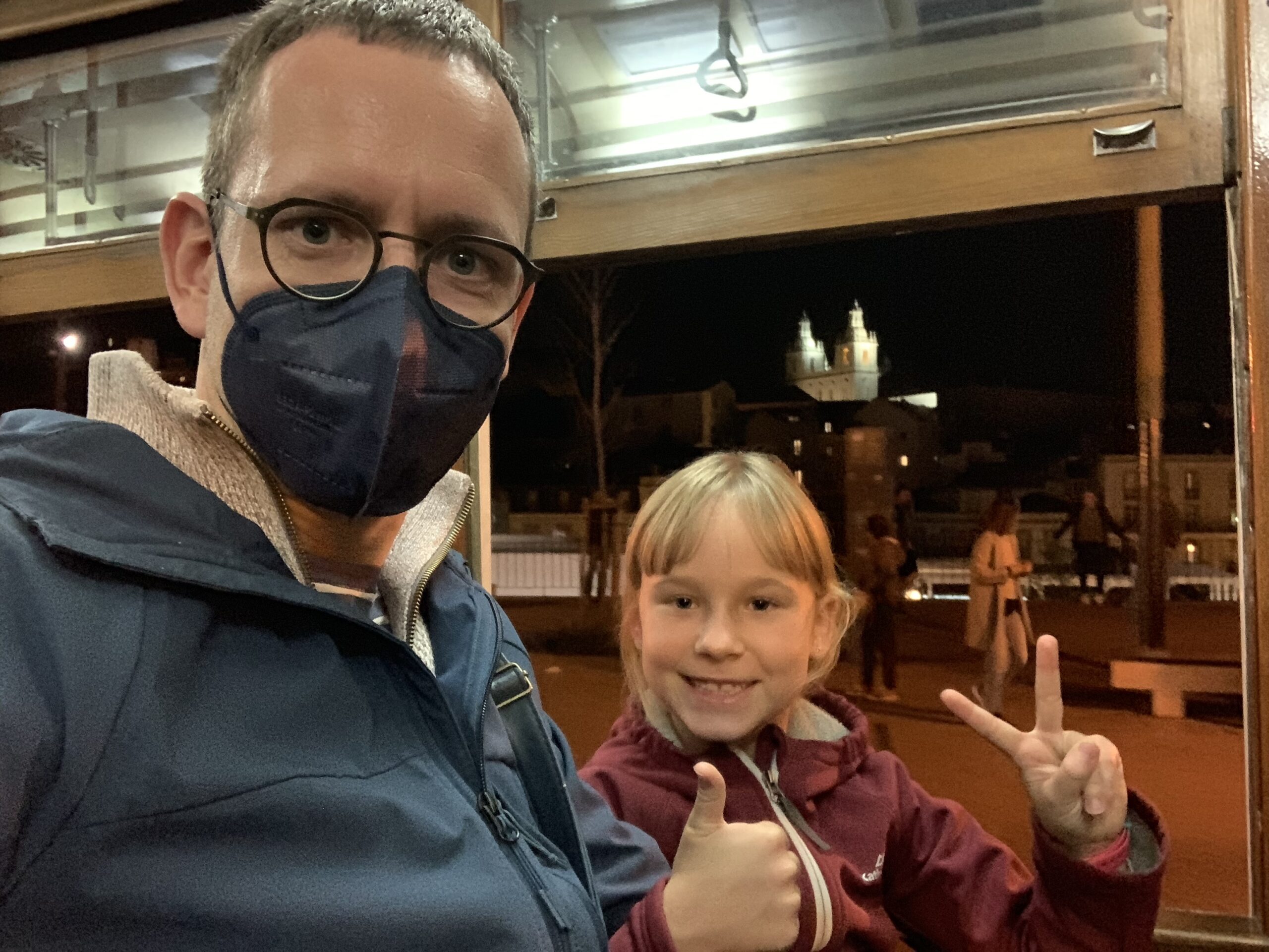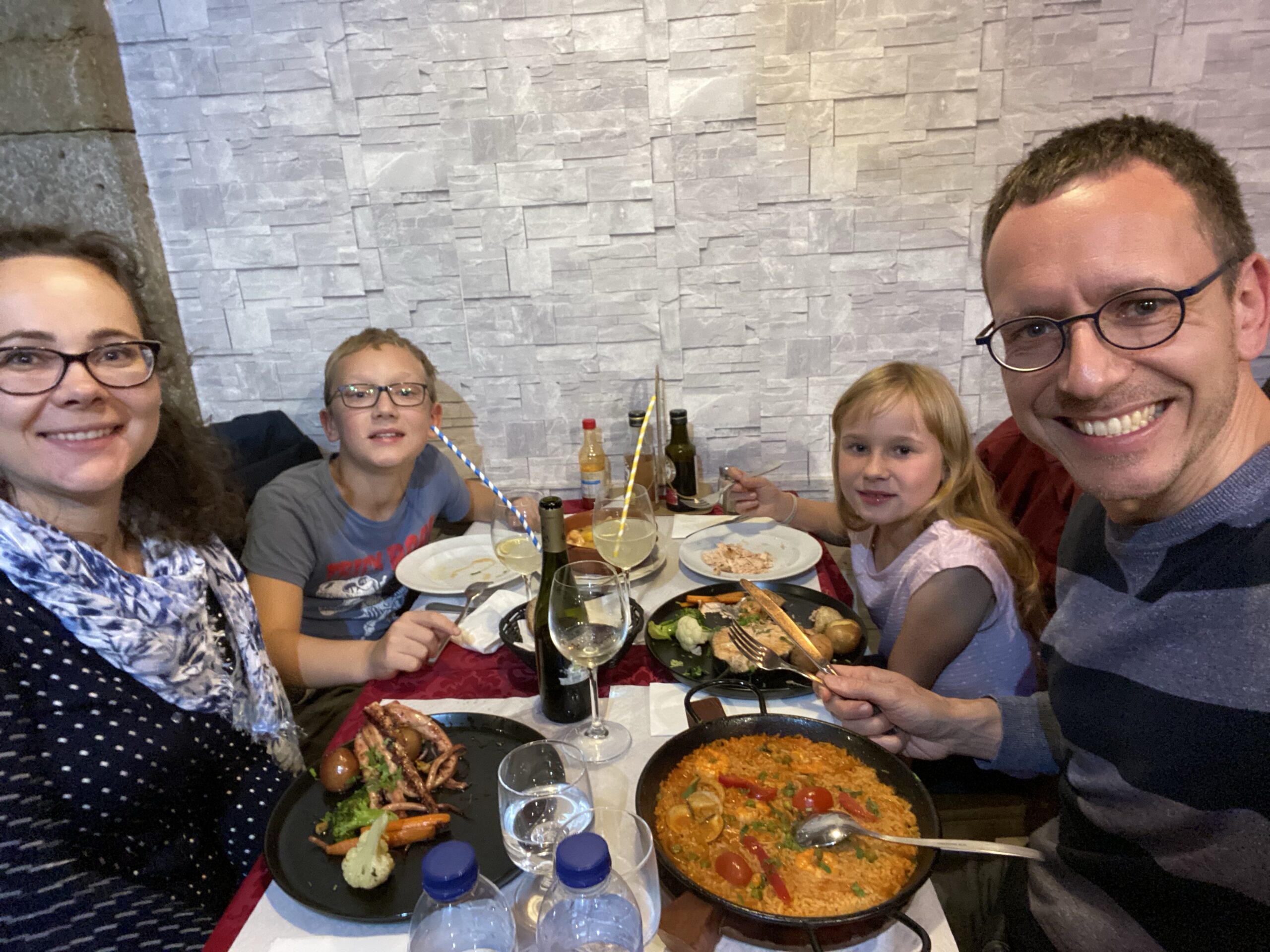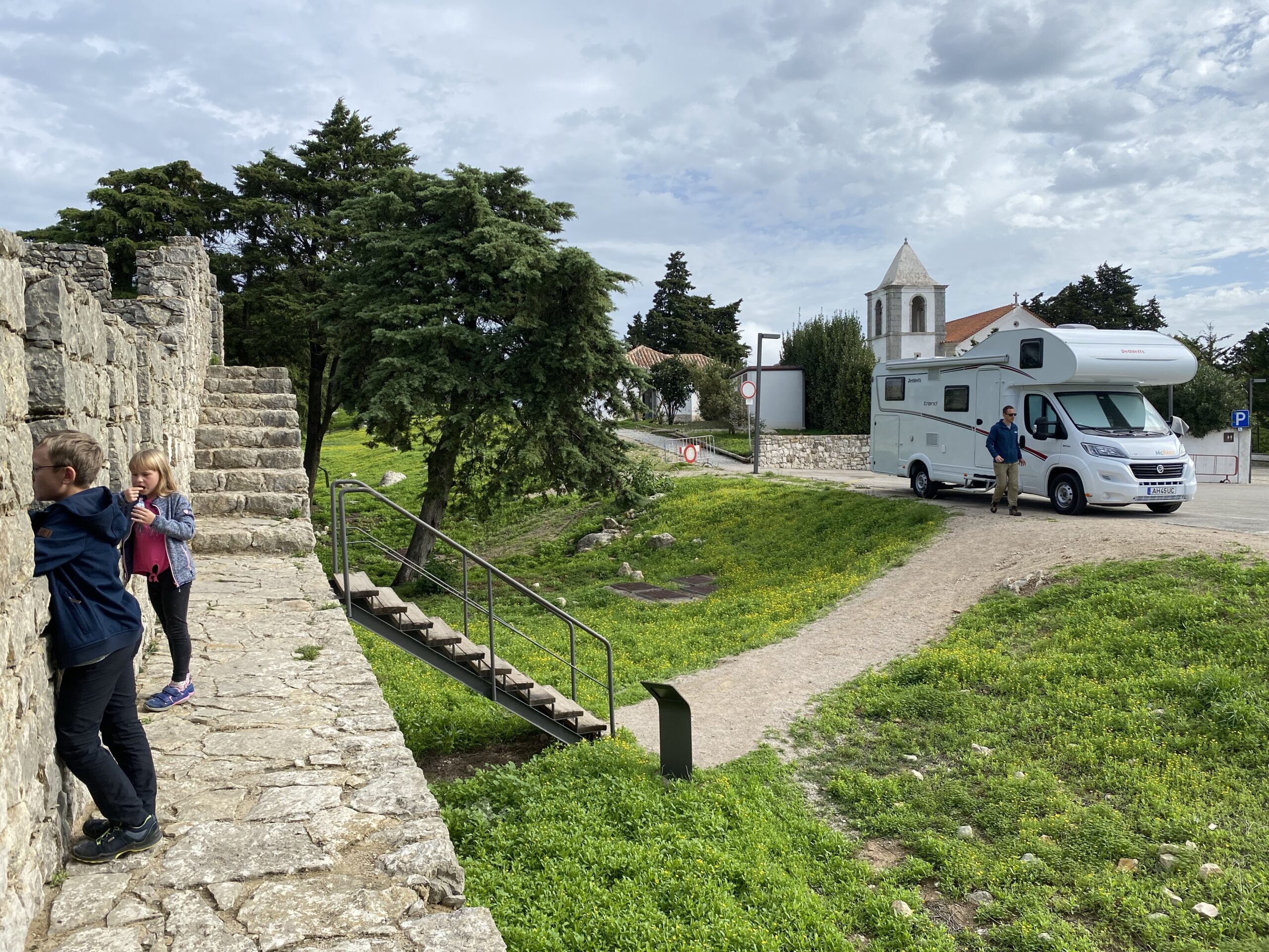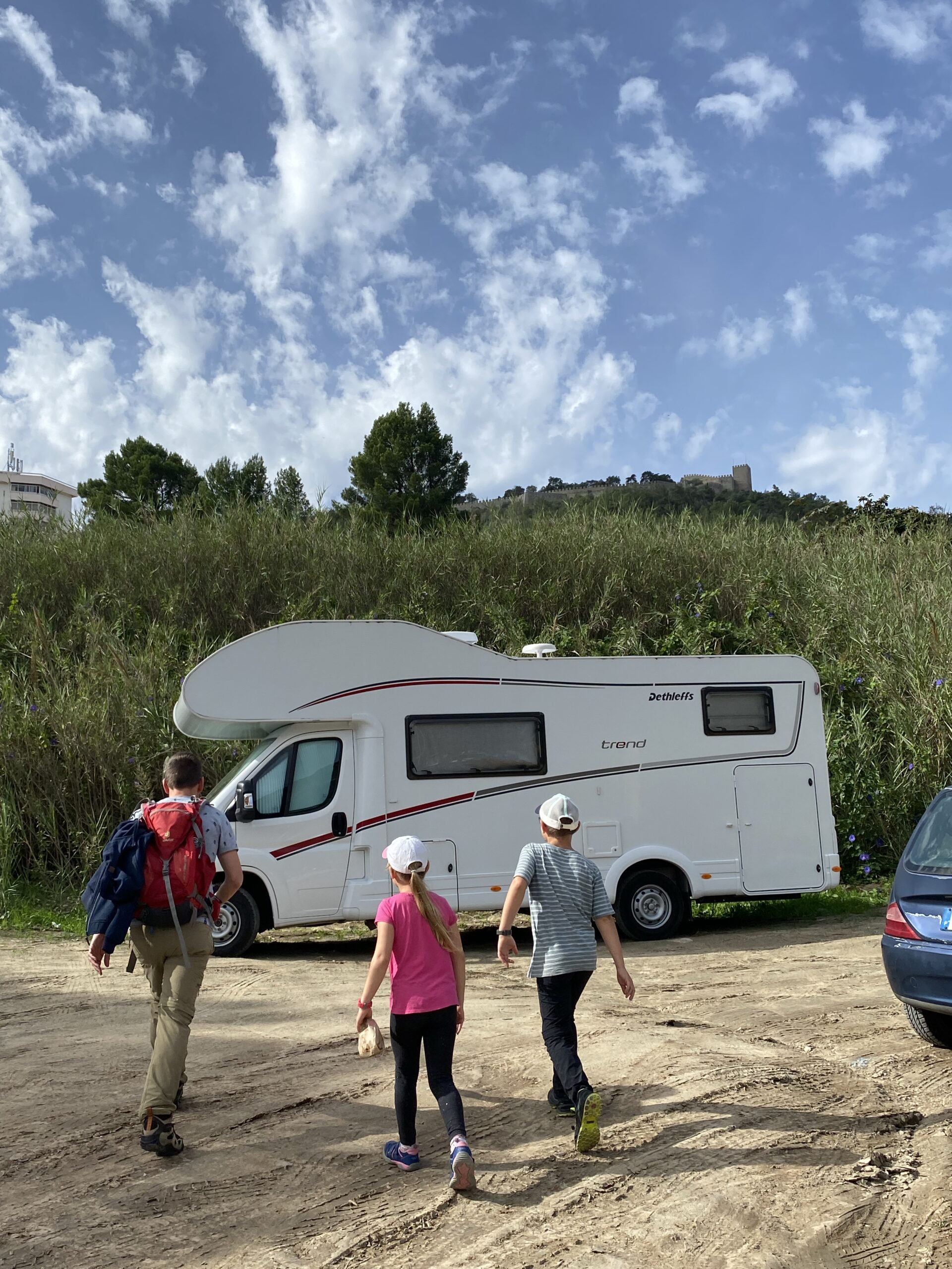 Das Abholen gestaltete sich mal wieder als etwas langwieriger – nach ca. 2,5h konnten wir endlich vom Hof fahren. Nun wohnen wir in einem 6-Bett-Wohnmobil. Die Kinder haben sich wieder den Alkoven ausgesucht und wir Eltern schlafen hinten. Somit bleibt der Esstisch immer frei für sonstige Aktivitäten.