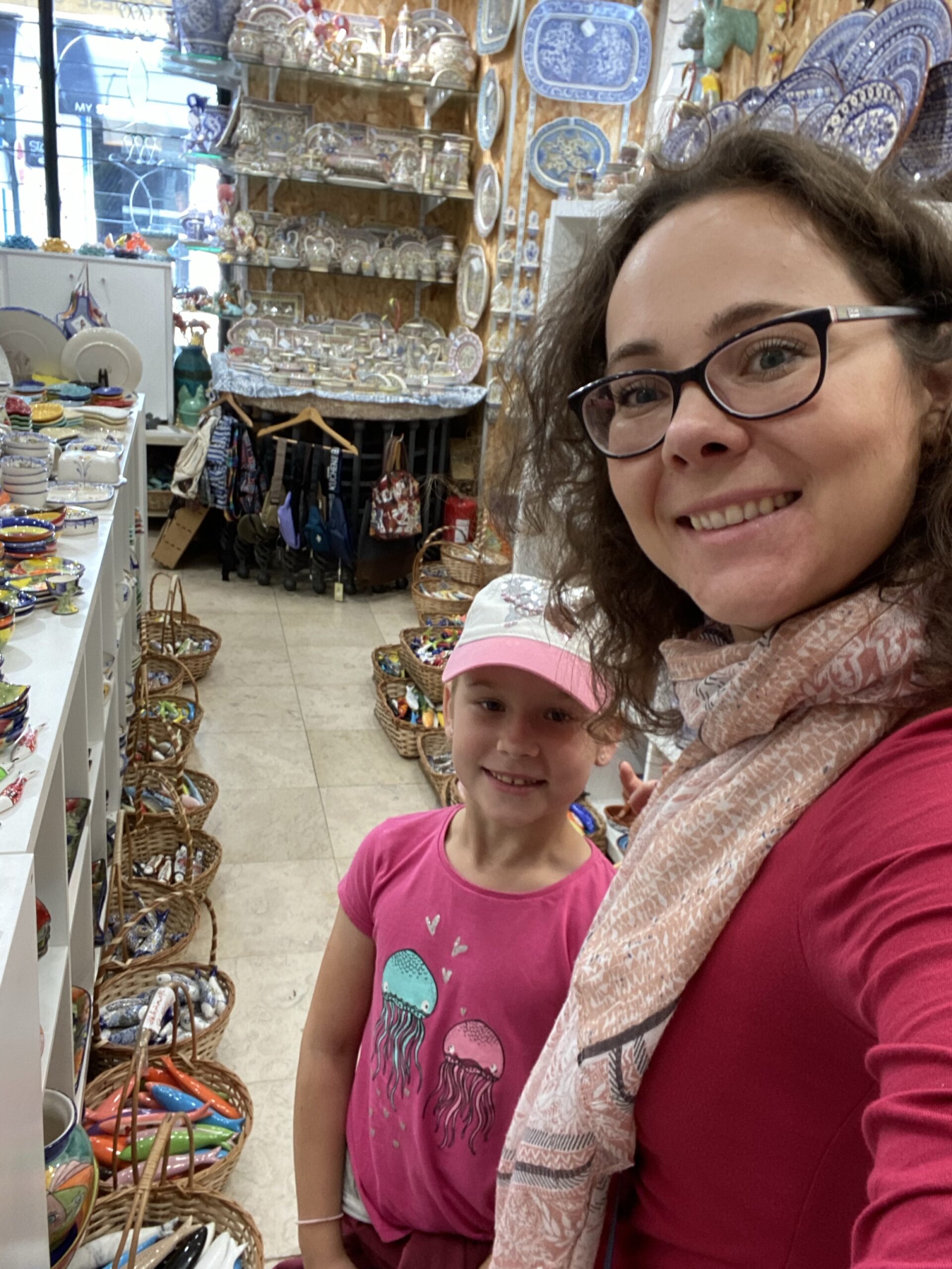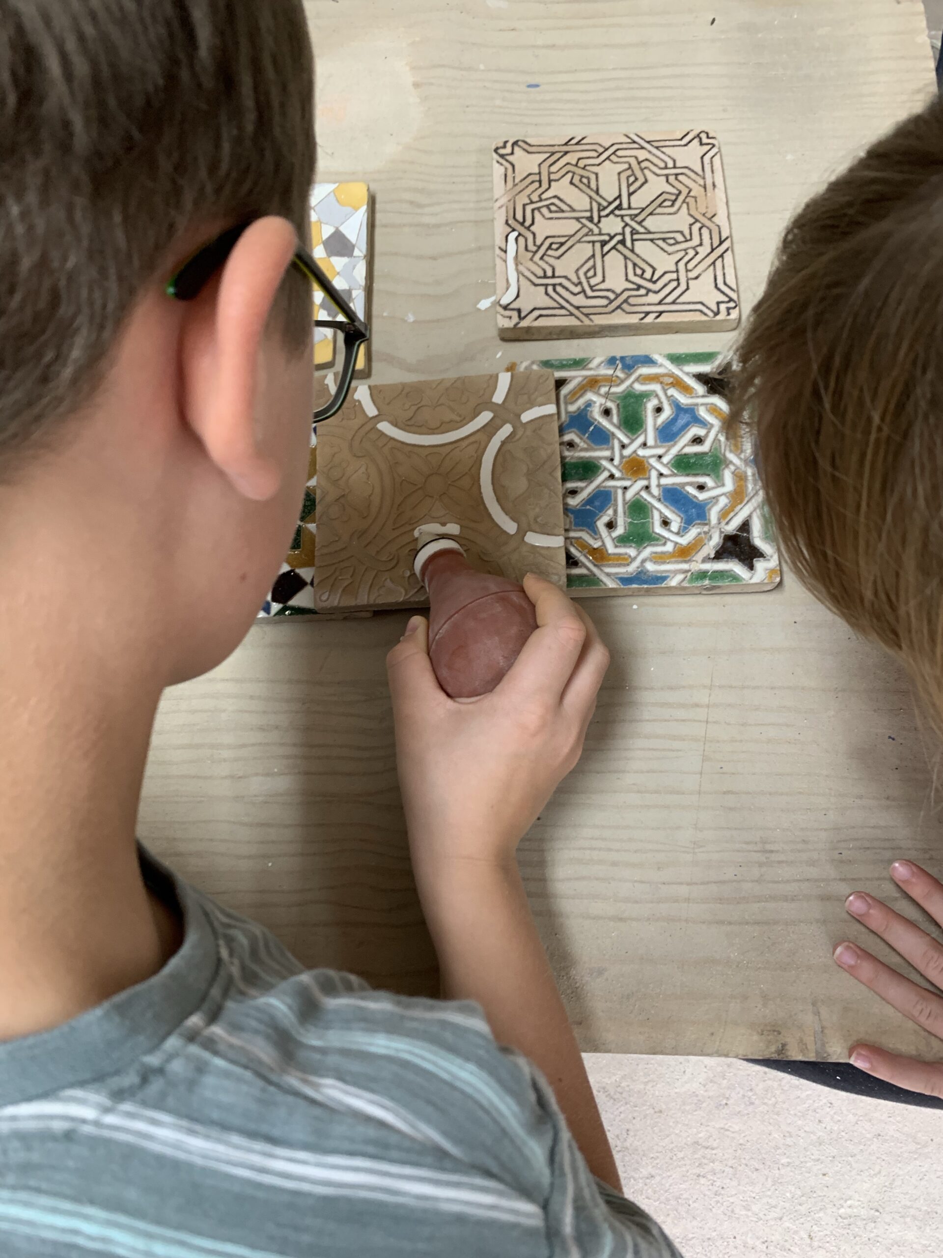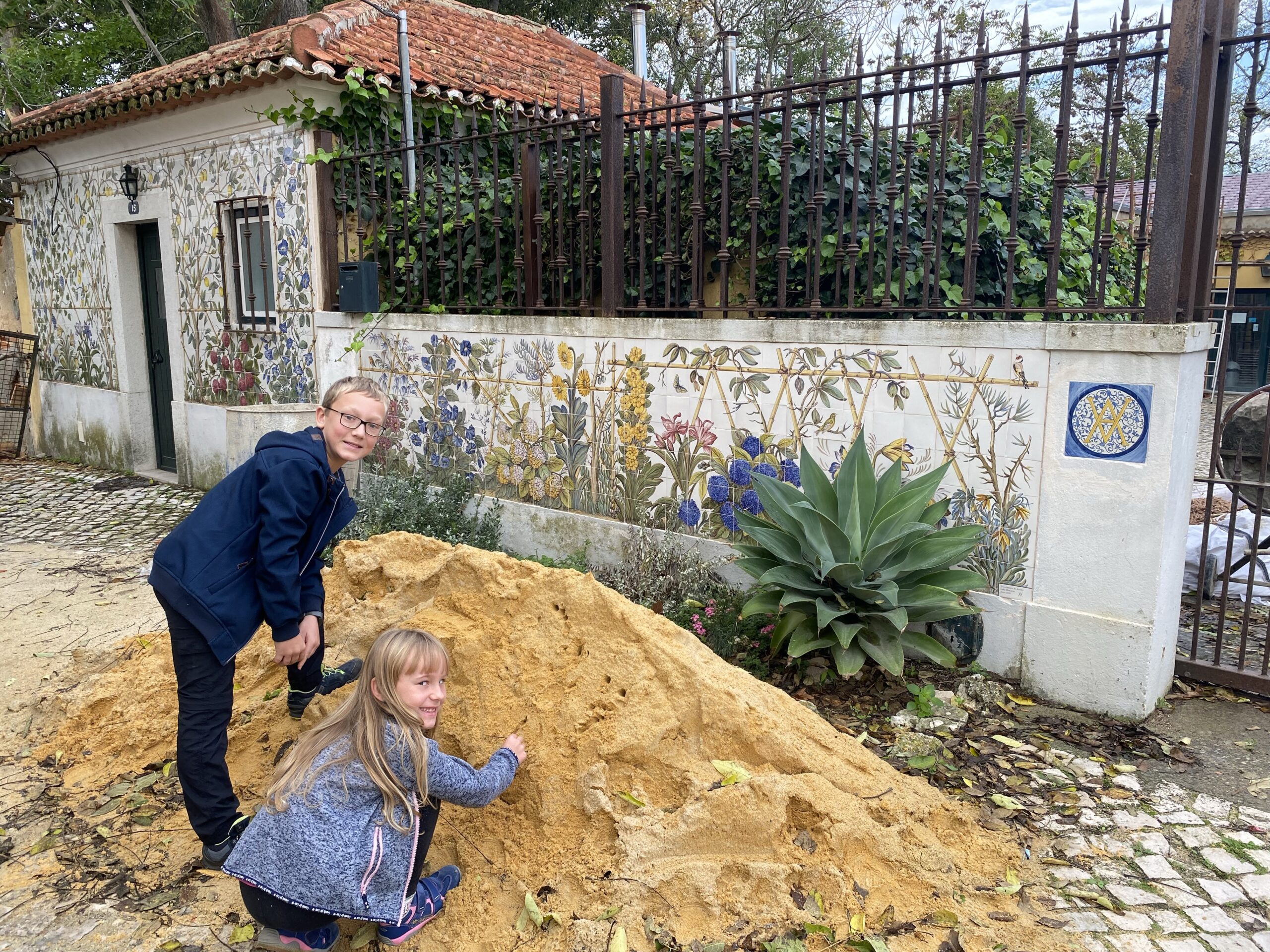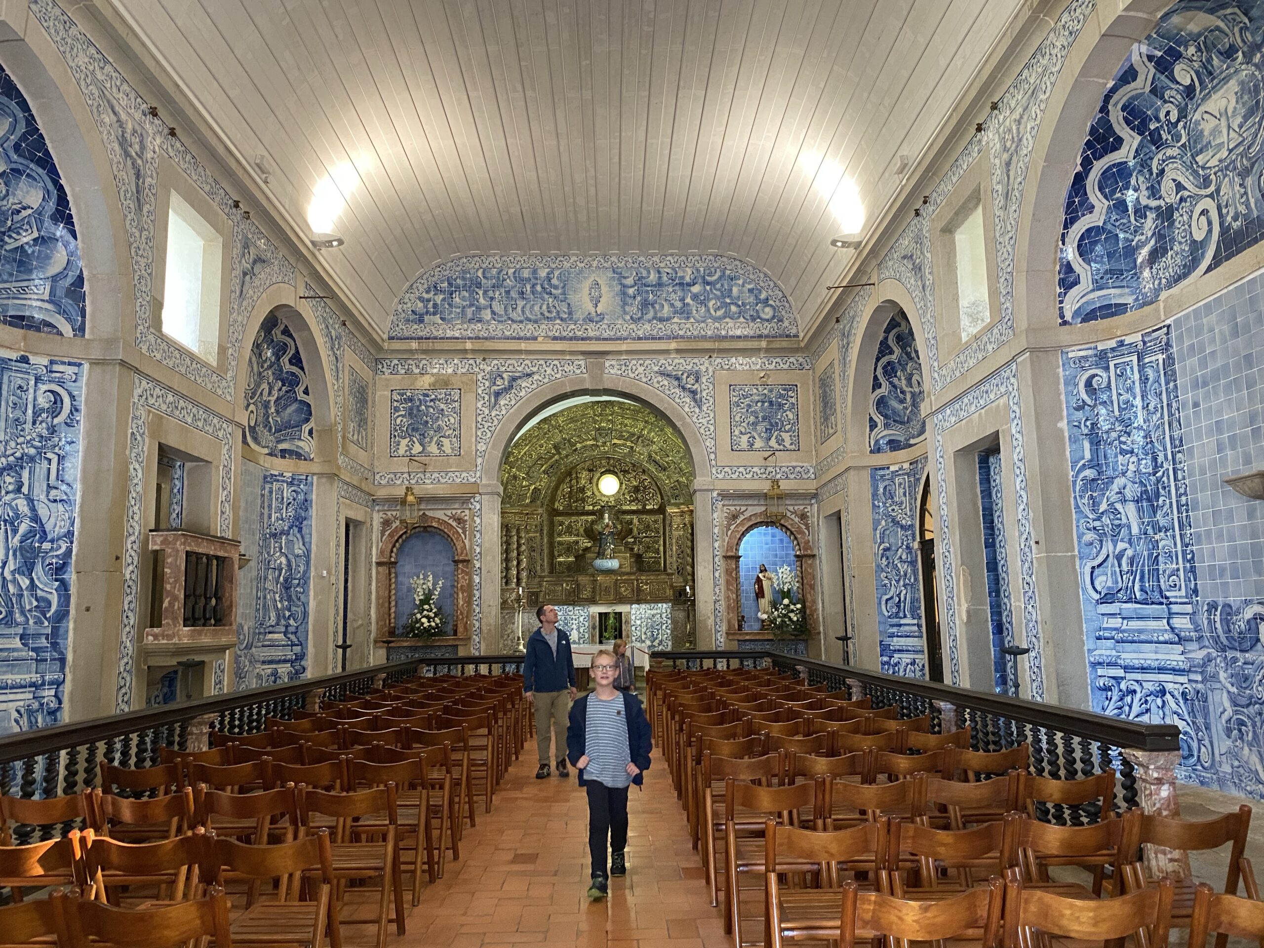 Unser erster Ausflug heute führte uns in eine nahegelegene Fliesenmanufaktur. Hier zeigte uns ein freundlichen Mitarbeiter, wie der Ton zunächst gerollt und dann die Fliese ausgeschnitten wird. Nach dem Trocknen und Brennen kann sie bemalt bzw. glasiert werden. Hier in Portugal nutzen sie dafür eine spezielle Glasur, die auch feine Malereien ermöglicht, ohne dass die Farbe beim Brennen zerläuft.