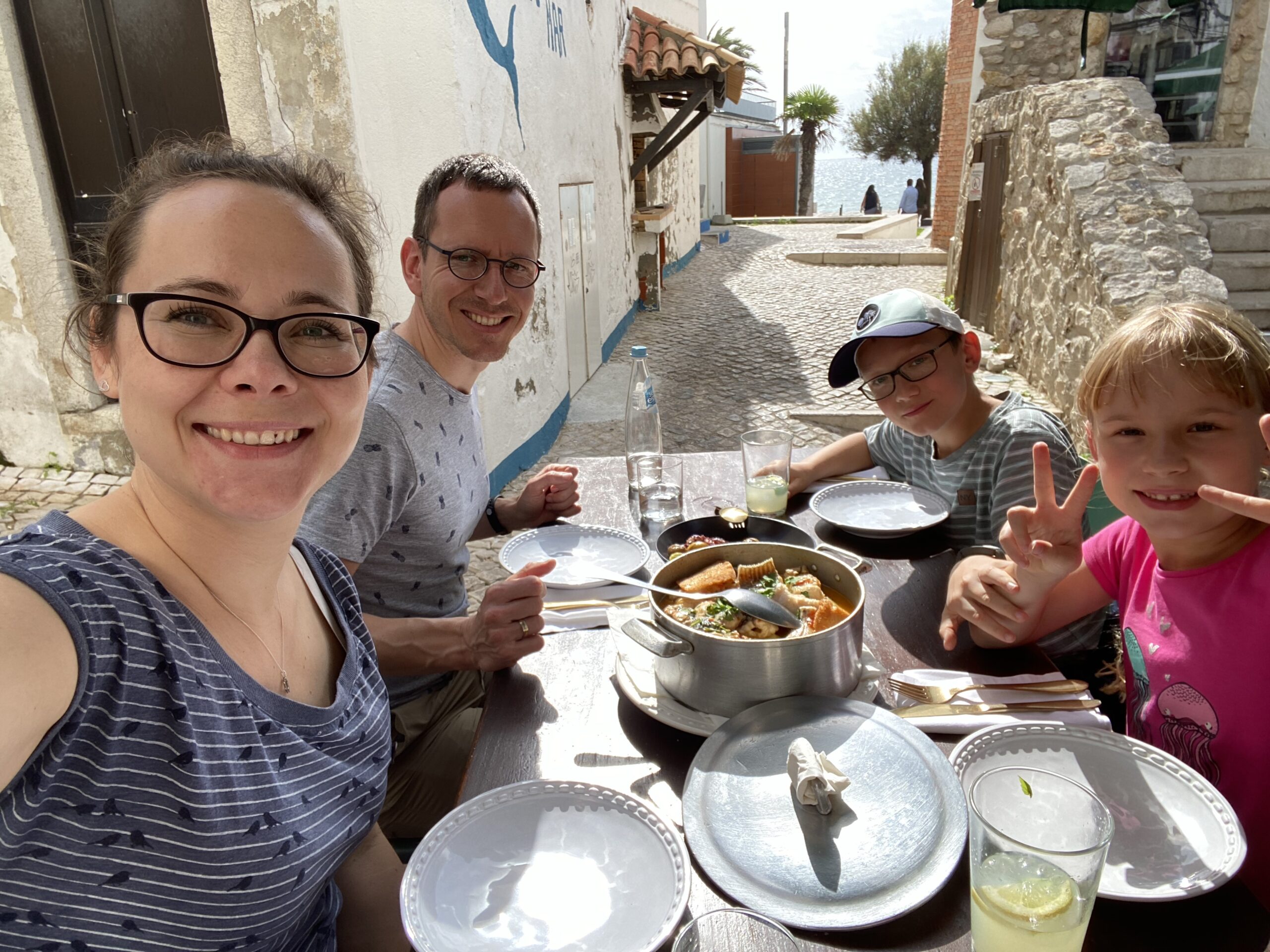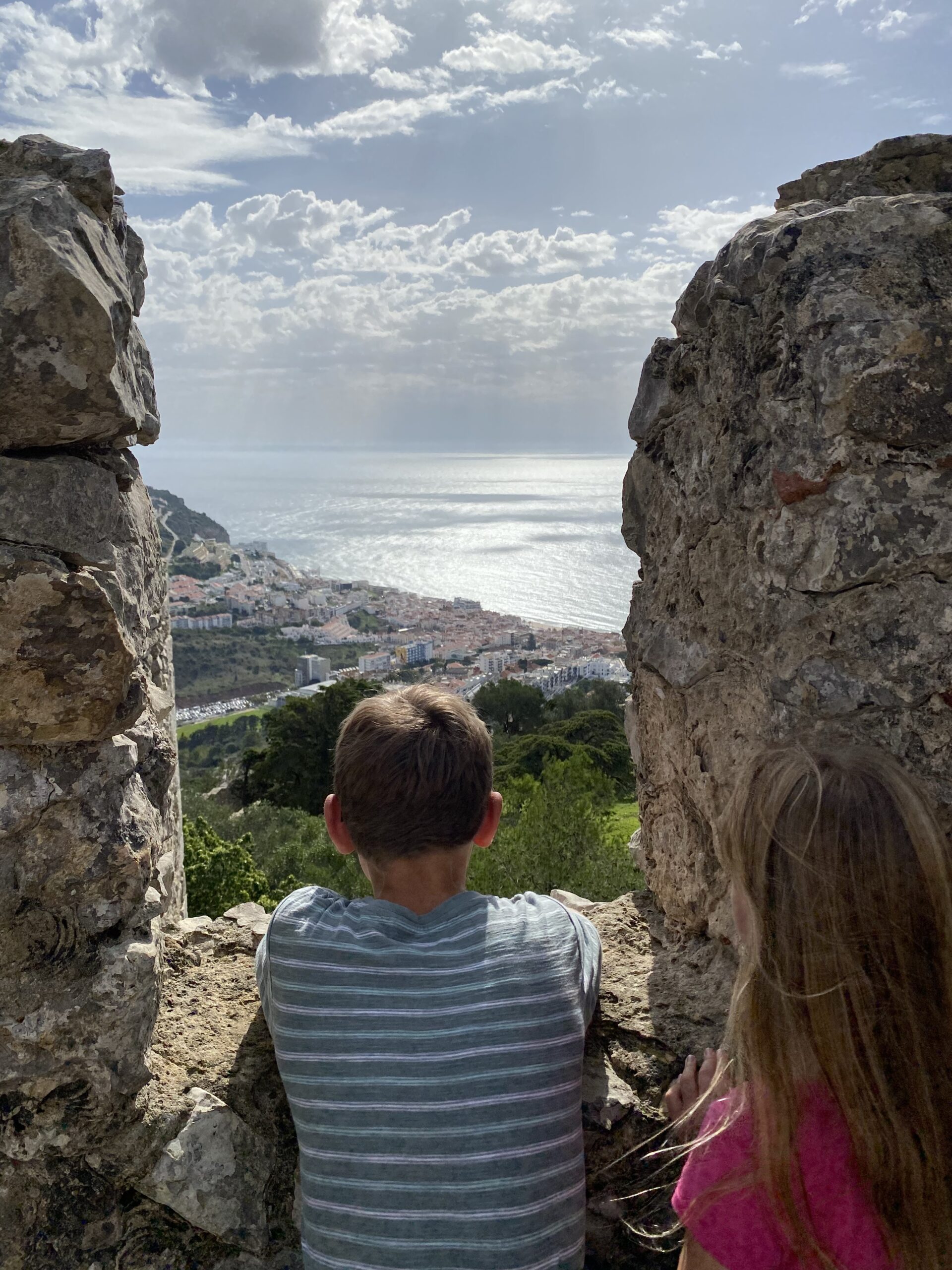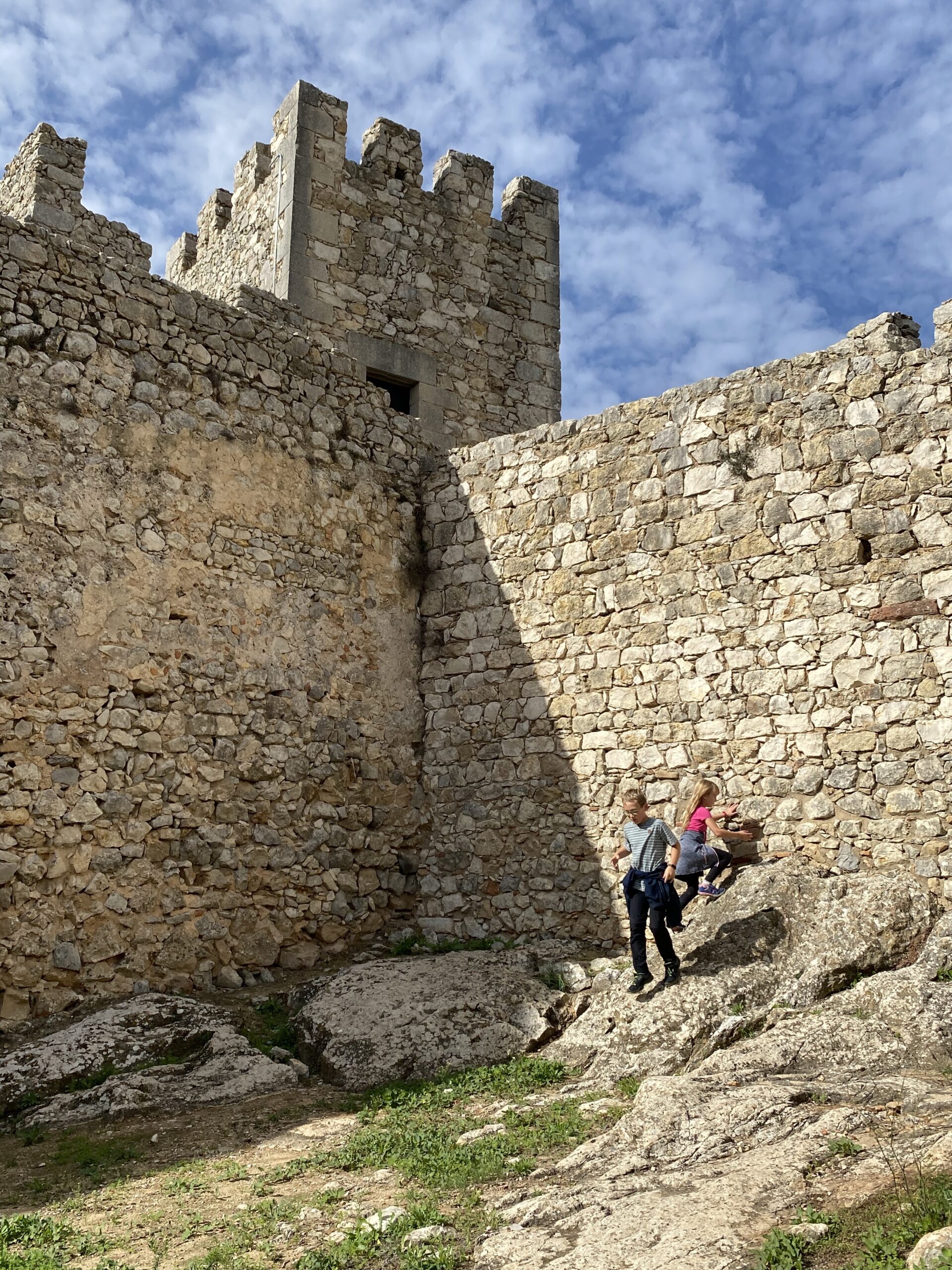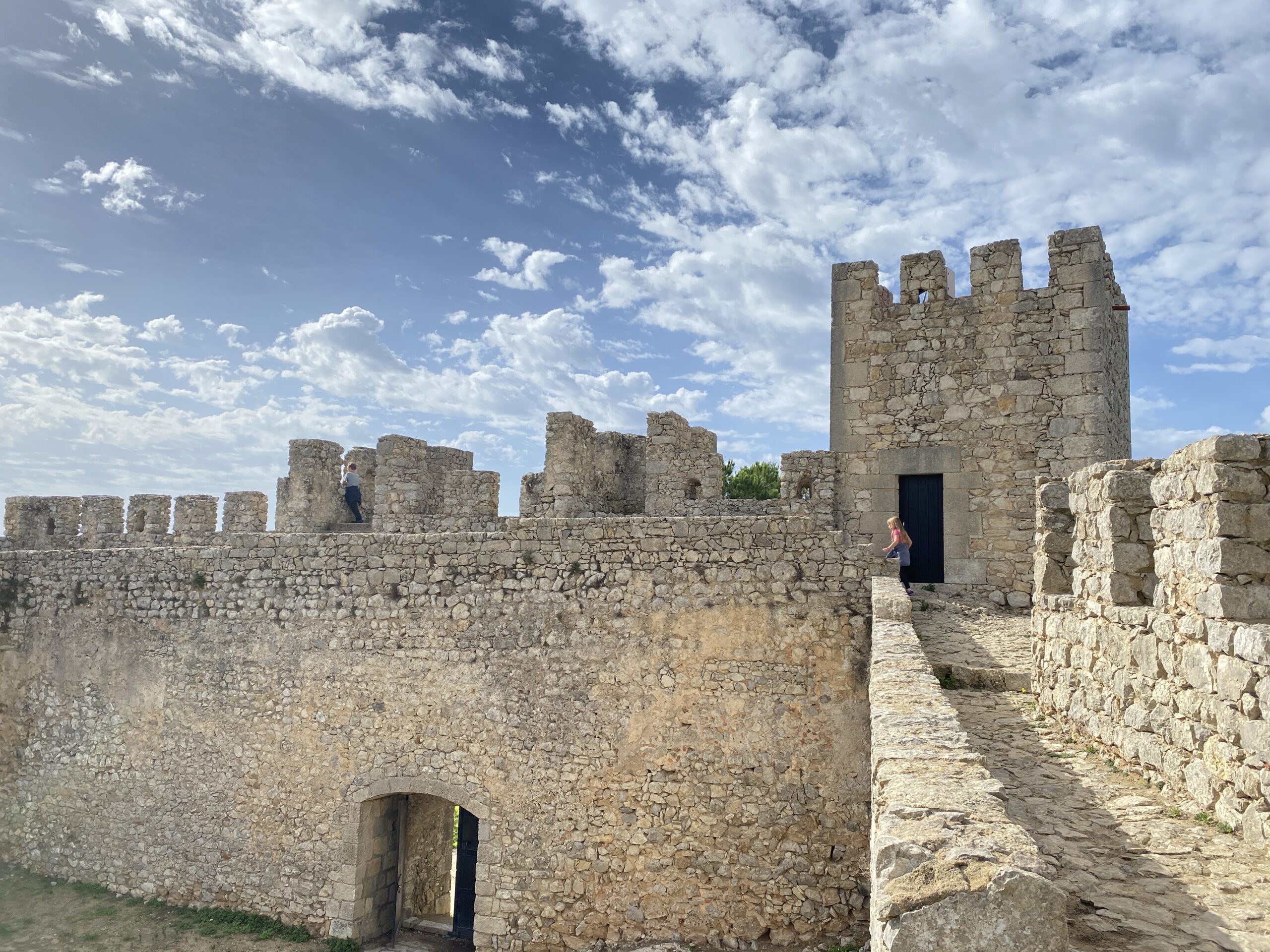 Weiter ging es in Richtung Sesimbra. Zunächst hielten wir an der Burg hoch oben über dem Dorf und spazierten eine Runde auf der Burgmauer. In Sesimbra gab es leckeren Fisch zum Mittag und einen Strand. Nach einem Eis stiegen wir wieder in unser WoMo und kürzten erst einmal die Hosen. Es war mit etwa 23°C angenehm warm.