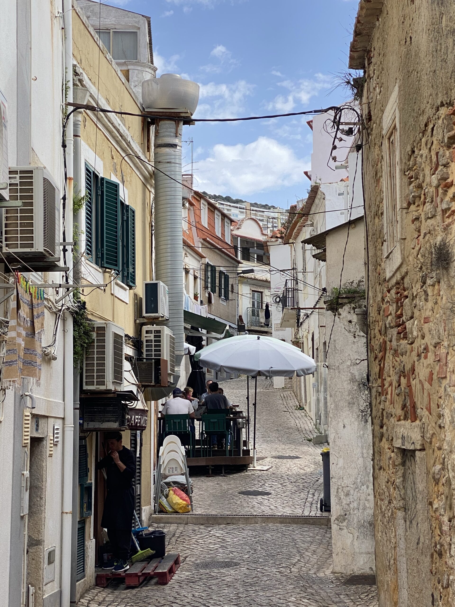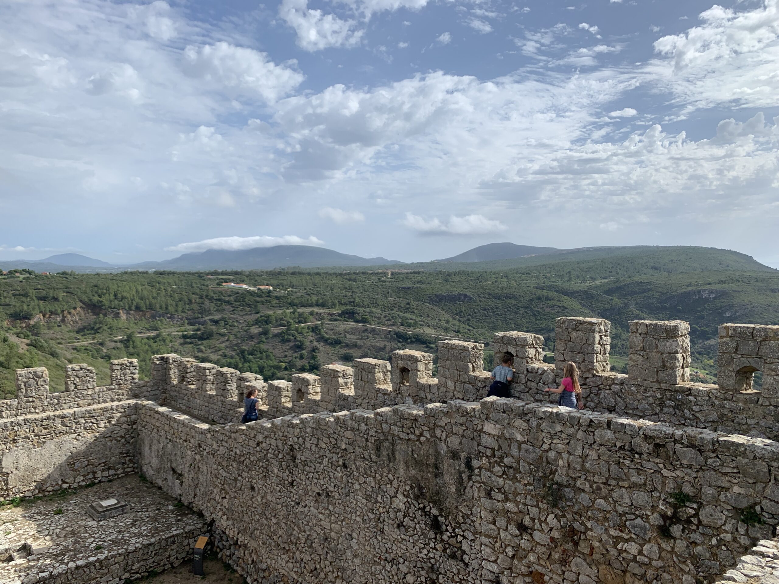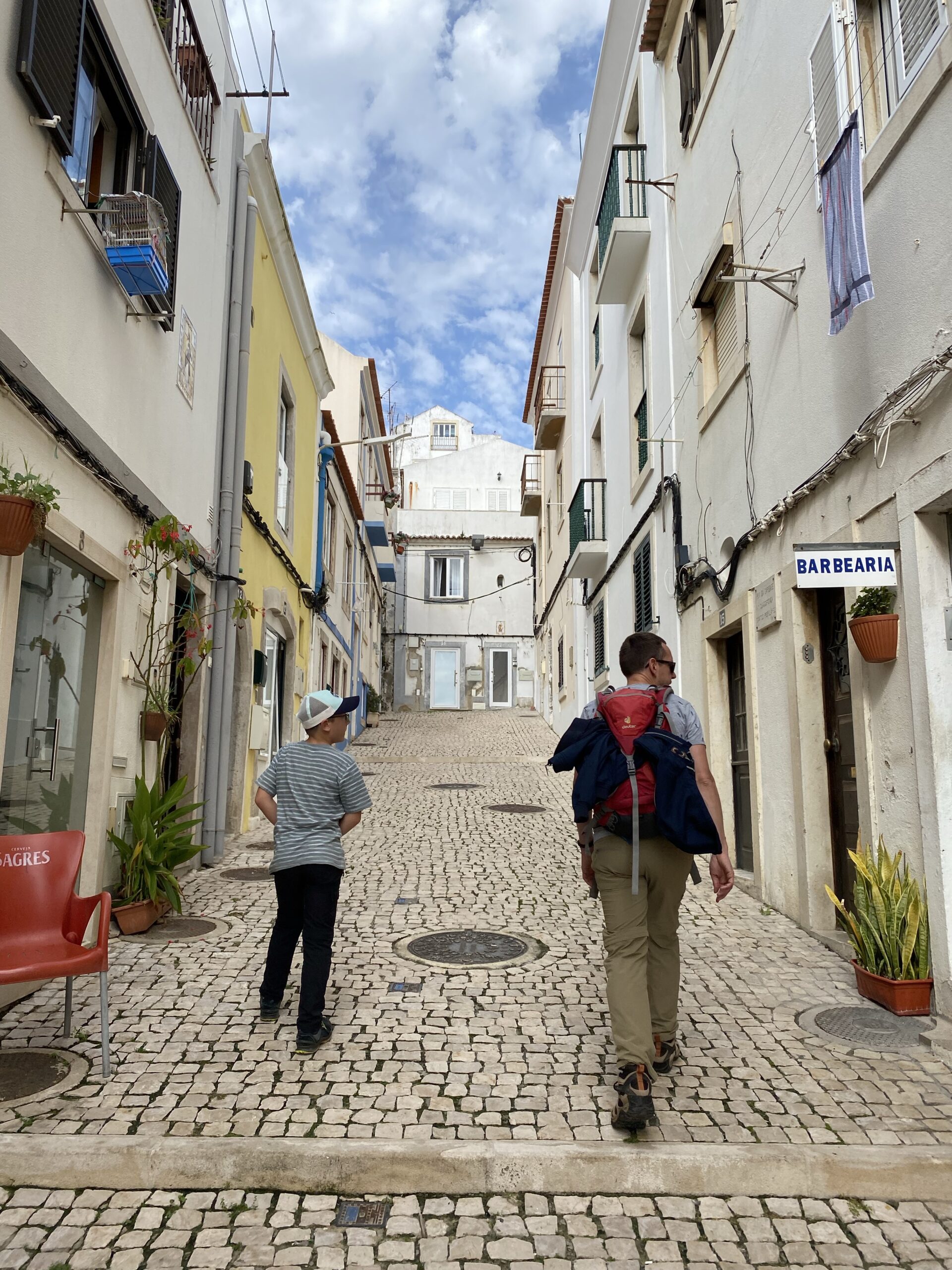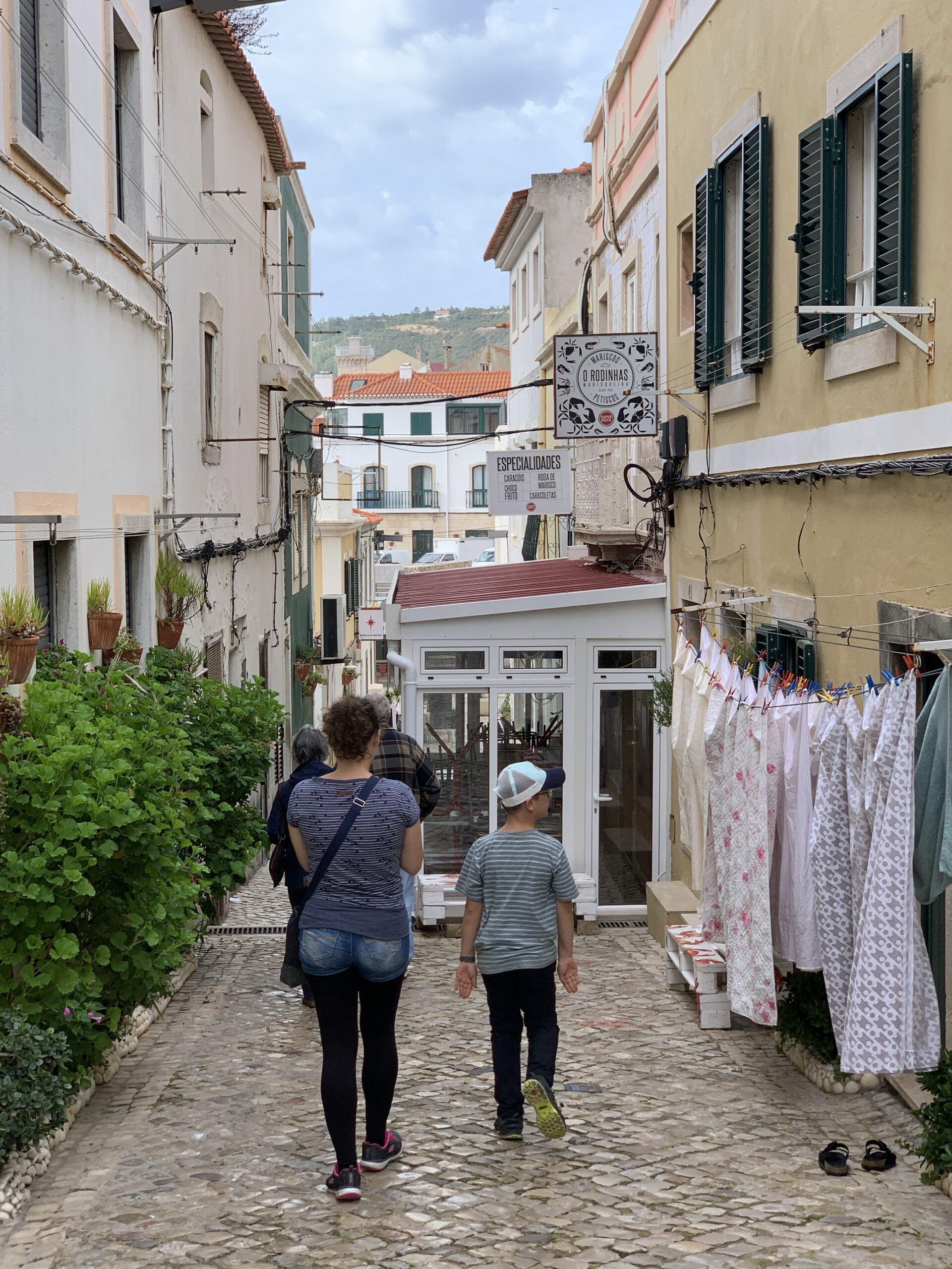 Weiter ging es in Richtung Sesimbra. Zunächst hielten wir an der Burg hoch oben über dem Dorf und spazierten eine Runde auf der Burgmauer. In Sesimbra gab es leckeren Fisch zum Mittag und einen Strand. Nach einem Eis stiegen wir wieder in unser WoMo und kürzten erst einmal die Hosen. Es war mit etwa 23°C angenehm warm.