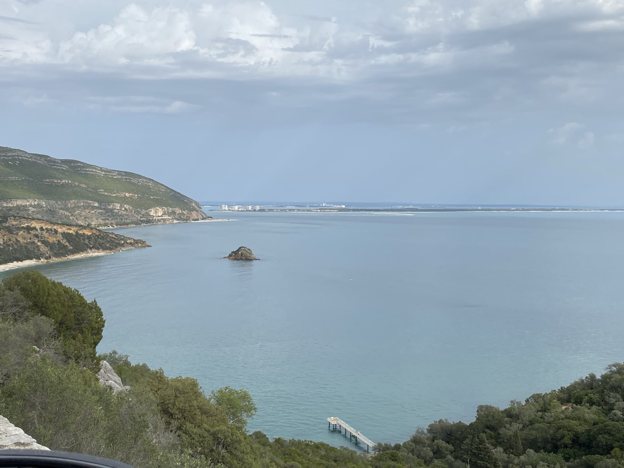 Weiter ging die Fahrt in Richtung Setúbal. Nach einem kurzen Schwenk über einen Supermarkt, wo wir uns noch einen Toaster kauften, fuhren wir durch den Naturpark Parque Natural da Arrábida, wo uns neben einer Schotterstraße schöne Ausblicke und Sandstrände am Wegesrand begleiteten.