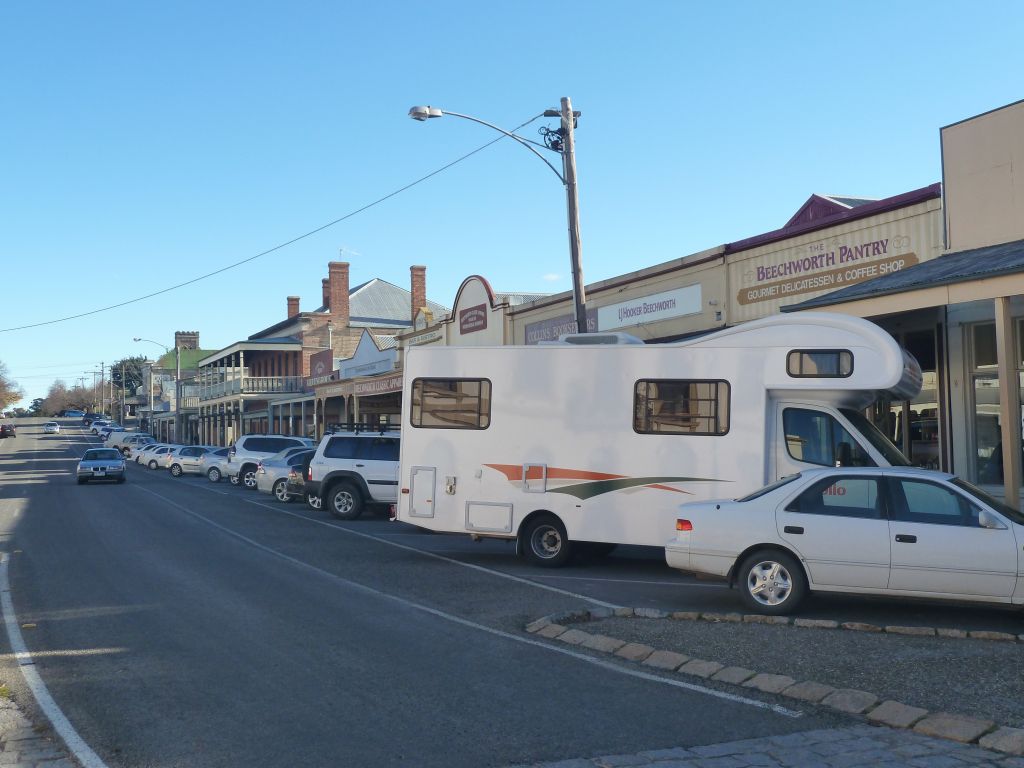 Seinen Gelände-gängigen Jeep nutzt der Aussi dann auch gern, um mit seinem Wohnwagen (also Anhänger) in den Urlaub zu fahren. Hier sehen wir kaum noch Wohnmobile wie unseres. Allgemein sind die Autos auch nicht ganz so alt wie in Neuseeland. Das Durchschnittsalter ist vielleicht ähnlich wie in Deutschland, nur die Geländegängigkeit ist höher.