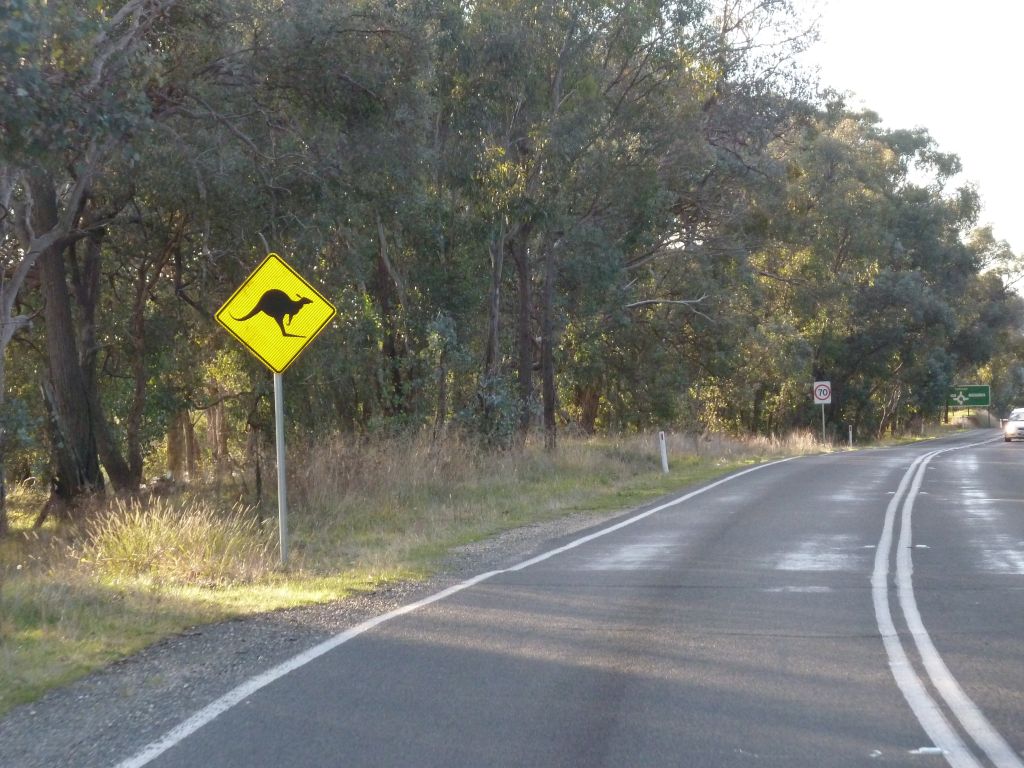 Zwar konzentrieren sich die meisten Aussies in den Großstädten, doch auch unterwegs gibt es hin und wieder Ortschaften. Diese schreiben dann immer gleich ihre Einwohnerzahl an das Eingangsschild (neulich eine auf den Mann oder die Frau genau!). Doch gibt es hier keine Überraschungen, die meisten Orte entlang der Strecke Melbourne – Canberra hatten deutlich weniger als 10.000 Einwohner, dafür nicht selten eine Tankstelle, eine Bibliothek, einen Supermarkt und mindestens eine Fast-Food-Kette. Ausgeschildert sind diese Ort dann auch wieder auf hunderte Kilometer. Ein Vergleich zwischen Gundagai (2.300 Einwohner) und Hönow würde dieses Mal sogar eine erste Beschilderung in Nürnberg erfordern! 😀