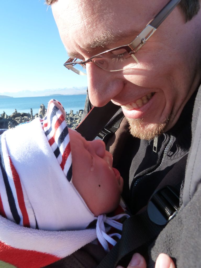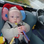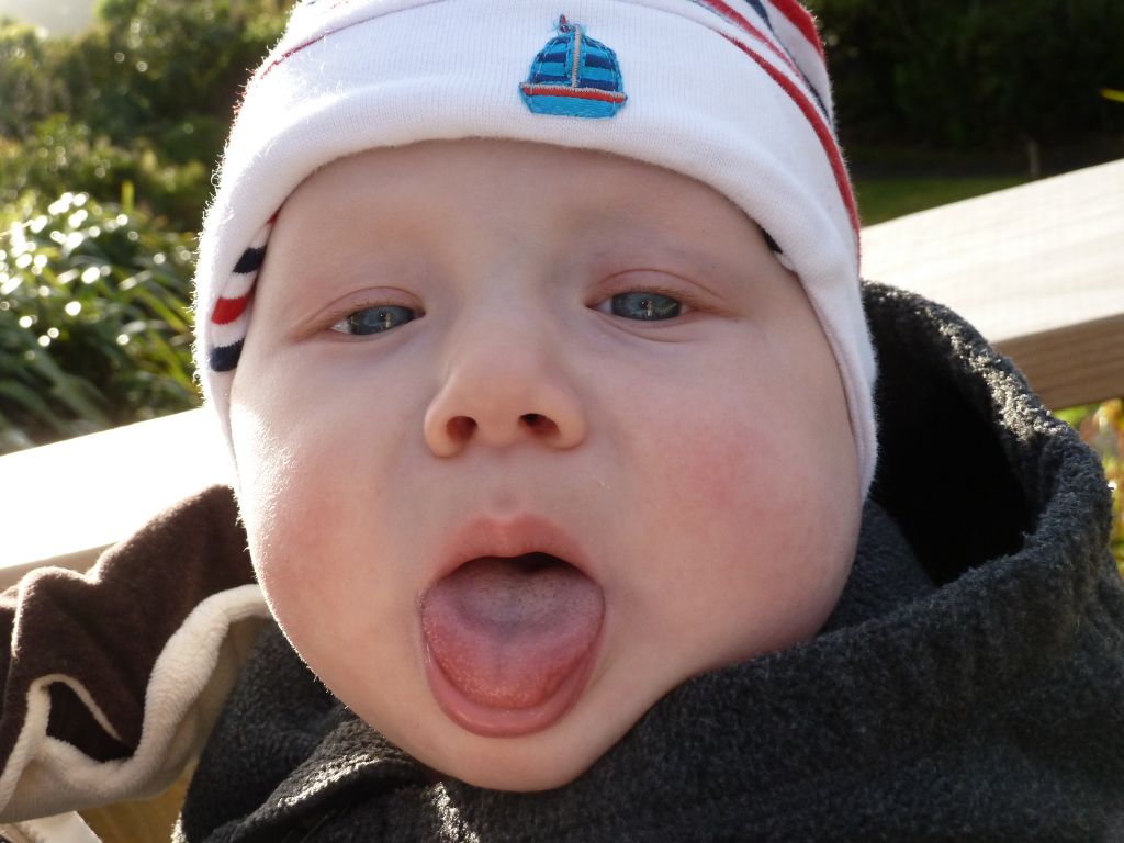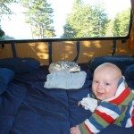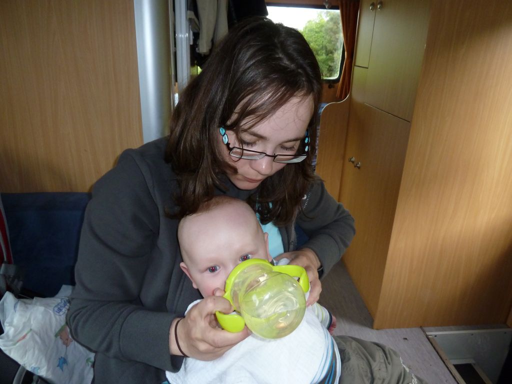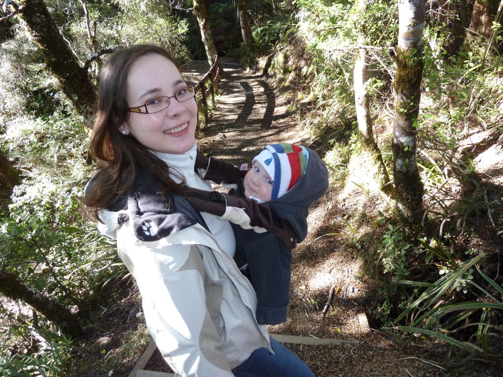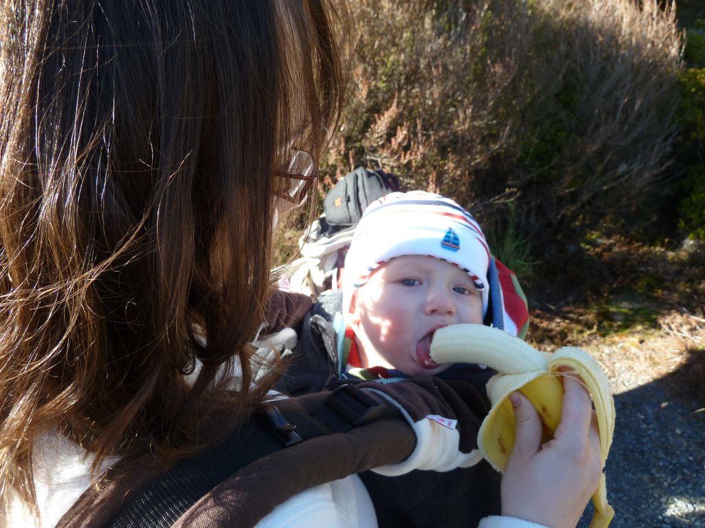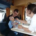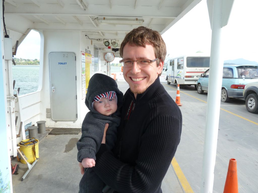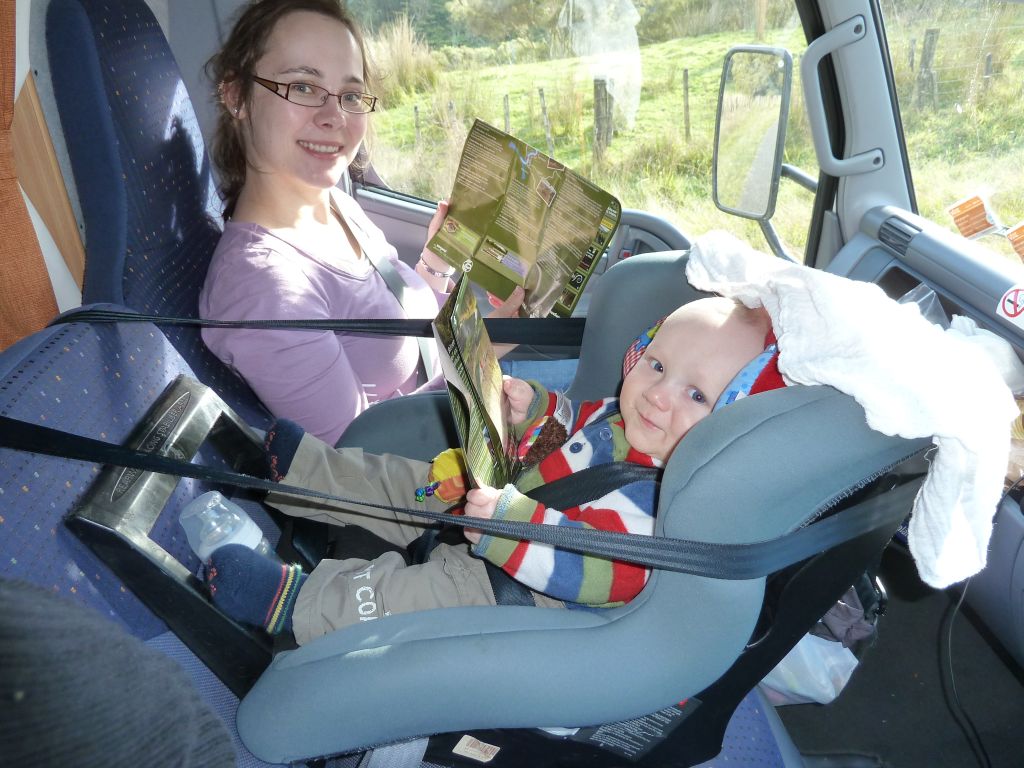 Für mich beginnt der Tag im Land der Träume. Dann wache ich manchmal auf, wenn es noch dunkel ist und erzähle Mama und Papa von meinem Traum. Aber die schlafen einfach weiter – ihr gleichmäßiges atmen lässt auch mich dann immer ganz schnell wieder einschlafen. Aber spätestens wenn es langsam hell draußen wird ist Schluss mit Schlafen! Wenn ich dann den Vorhang hin und her schiebe, sehen das auch bald Mama und Papa ein und kuscheln und spielen mit mir. Mama steht dann bald auf und holt mir eine neue Windel – vor kurzem gab’s endlich wieder Pampers zu kaufen, die lokalen Huggies sind ganz schön dick und unbequem. Leider hat Mama immernoch keine Kleidung gekauft, die nicht über den Kopf zu ziehen ist – ich erinnere sie doch jeden Tag daran! Nach so viel rumtollen brauche ich meist nur noch ein bisschen zu trinken und dann ist es Zeit für das Nach-Dem-Aufstehen-Schläfchen. In der Zeit können dann auch Mama und Papa in Ruhe Frühstückessen oder losfahren, wenn es mal wieder etwas später mit dem Nickerchen wird. Ganz oft fahren wir gar nicht weit und dann steht eine Wanderung an. Dann packt mich Mama immer viel zu dick ein und schnallt mich beim Papa auf den Bauch (letztens sogar mal bei sich selbst). Das ist zwar immer ganz schön eng, aber eigentlich gar nicht so schlecht. Ich kann dann schön die Bäume beobachten und Papas Herzschlag hören. Der wird immer ganz schön schnell, wenn es den Berg hochgeht. Dann schlaf ich immer lieber schnell ein, damit Papa nicht mitbekommt, dass ich es bin, der hier so schwer an ihm hängt 😉 Doch Mama und Papa wandern gern länger als mein kurzes Nickerchen, sodass ich bald wieder die Welt um uns herum beobachten kann. Wird dies langweilig, brauch ich mich nur kurz beschweren und schon singen die beiden ein Lied nach dem anderen. Ach toll! Zurück zu Hause spricht Papa immer von „seinem kleinen Backofen“. Ich weiß gar nicht was er hat, wenn hier einer ganz warm ist, dann er! Nach so einer anstrengenden Wanderung knurrt mir immer ganz schön der Magen, gut das Mama ganz viele Sorten Breichen gekauft hat. Da gibt es immer mal was Neues – das ist auch gut so, denn meistens schmecken die nicht so gut 🙁 Den mit Rind und den mit Reis mag ich am liebsten – da darf mir Papa auch schon mal ein 3/4 Gläschen warm machen. Anschließend darf ich dann wieder hinten ein bisschen die Welt der Bewegung erkunden, während es großes Mittagessen gibt. Wenn es dann mit unserem Zuhause weitergeht, bin ich voll dabei. Ich darf vorne bei Mama und Papa mit sitzen und zeige Mama immer auf der Karte wo es hingeht. Leider hört Mama nicht immer auf mich, sodass Papa hin und wieder umdrehen muss. Wenn es gerade nichts zu lesen gibt, hat die Mama ganz viel Spielzeug für mich parat. Am liebsten mag ich die Spiegel – entweder um das andere Baby zu bestaunen oder die Sonnenreflexion am Dach zu verfolgen. Was so ein Spiegel alles Tolles kann! Wenn wir mal wieder länger unterwegs sind hat die Mama Obst da. Da darf ich dann auch immer mal dran rumlecken. Apfel ist mir ja viel zu sauer, aber Birne ist gar nicht schlecht und Weintrauben total lecker süß. Da kann ich dann auch endlich mal meine Zähnchen einsetzen. Seit neustem erzählen ja Mama und Papa was von oberen Zähnen – wozu auch immer man die noch gebrauchen kann. Spüren kann ich jedenfalls noch nichts. Nur lustig knirschen tut’s, wenn ich die Lippen zusammenpresse – und wie lustig die Mama dann immer dreinschaut! 😉