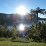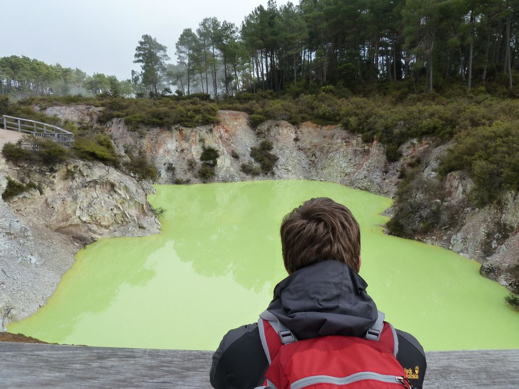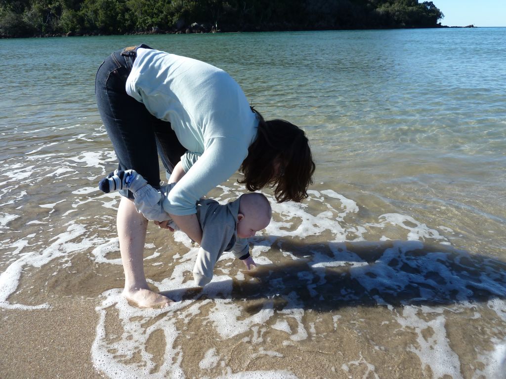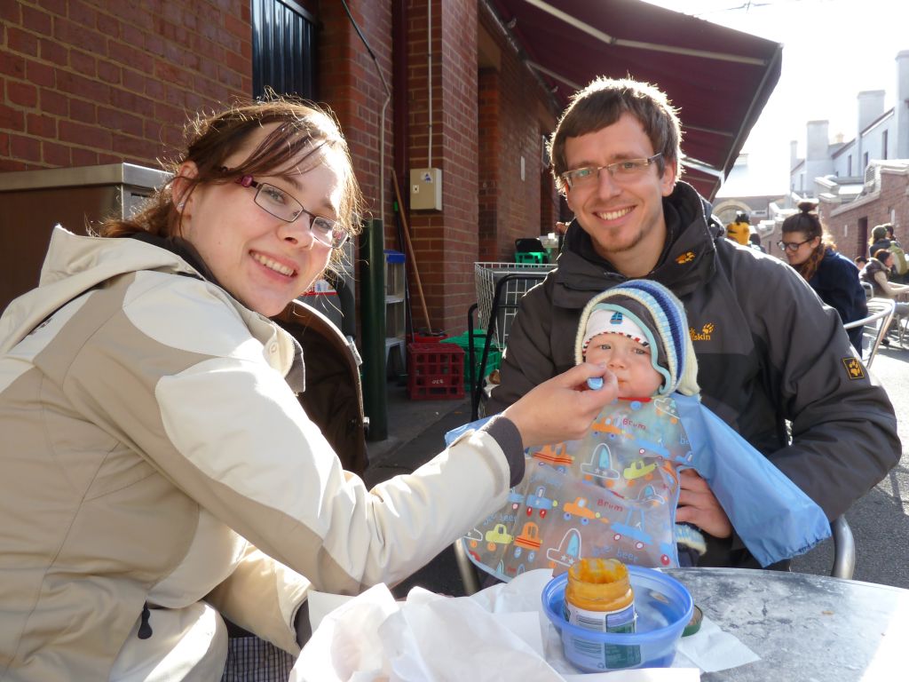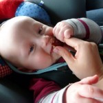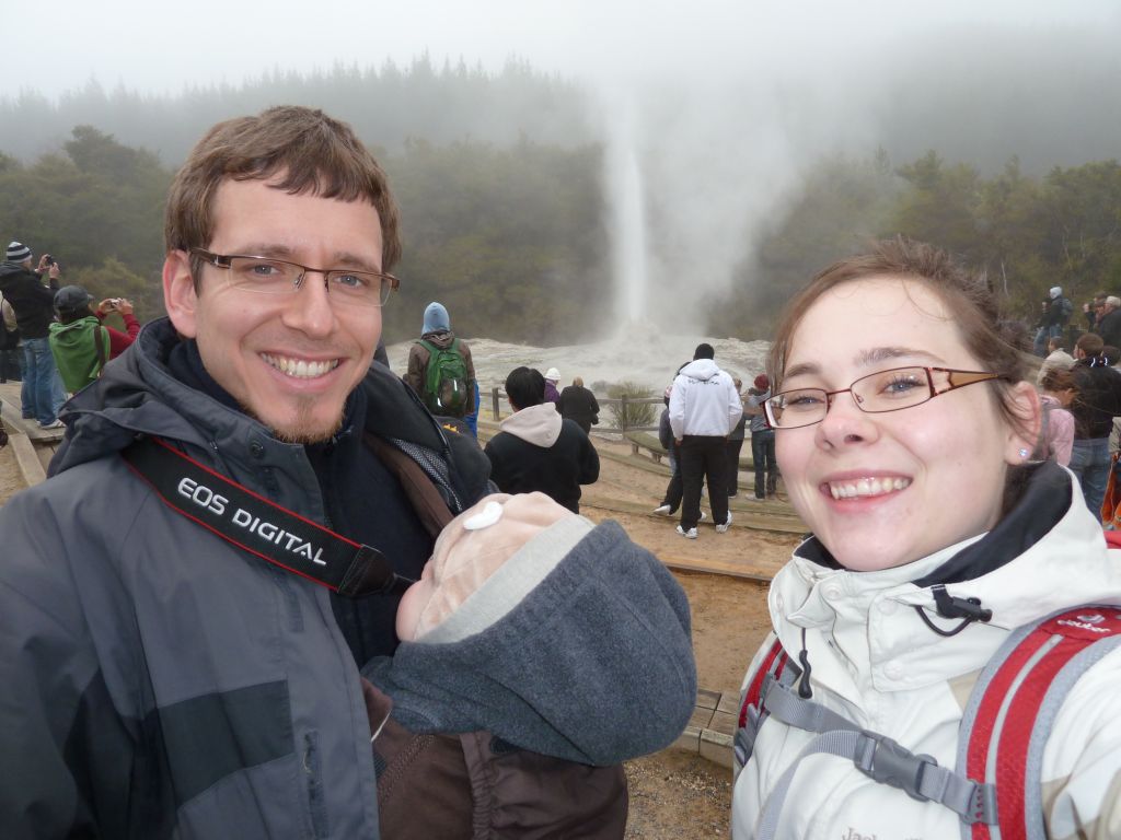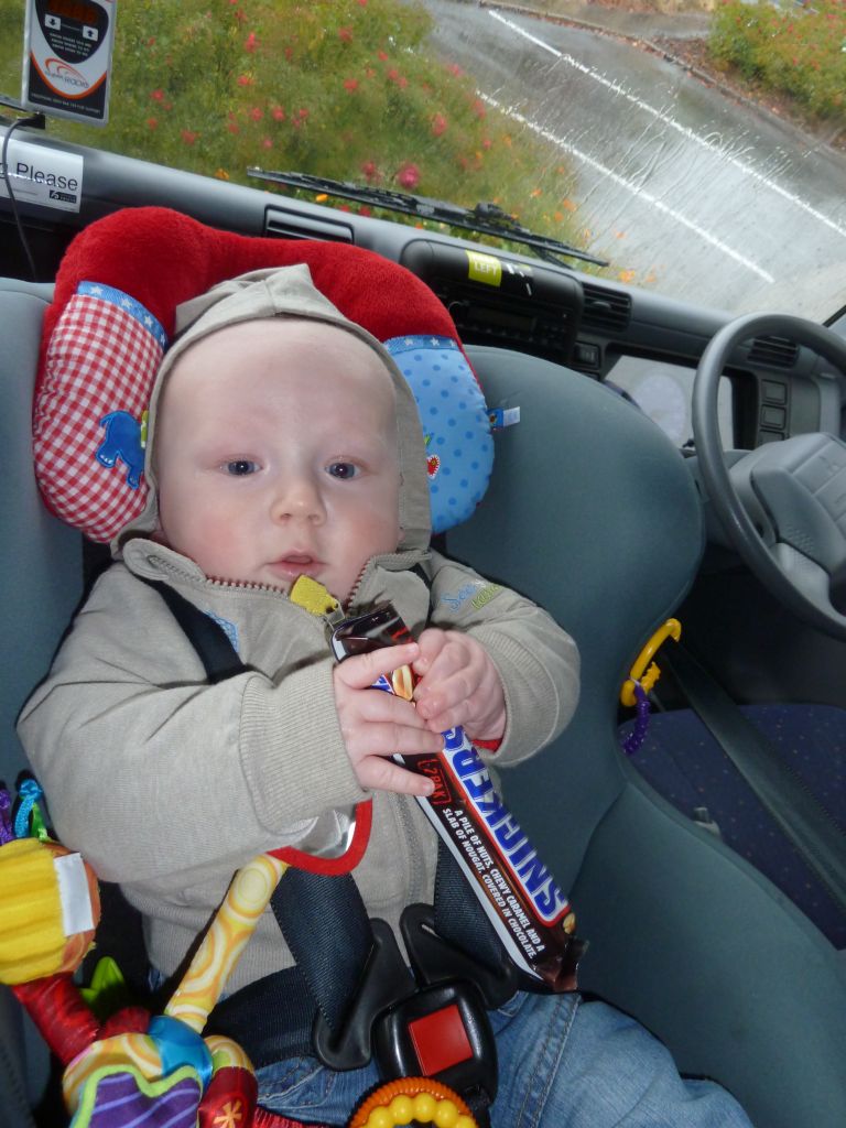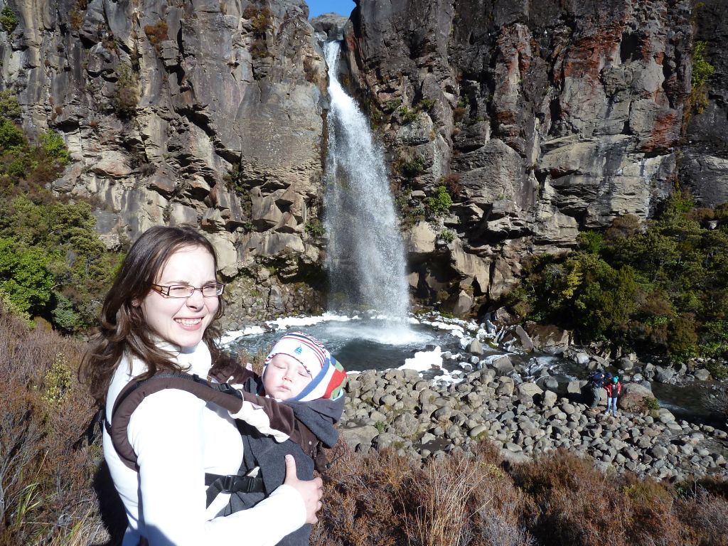 Für mich beginnt der Tag im Land der Träume. Dann wache ich manchmal auf, wenn es noch dunkel ist und erzähle Mama und Papa von meinem Traum. Aber die schlafen einfach weiter – ihr gleichmäßiges atmen lässt auch mich dann immer ganz schnell wieder einschlafen. Aber spätestens wenn es langsam hell draußen wird ist Schluss mit Schlafen! Wenn ich dann den Vorhang hin und her schiebe, sehen das auch bald Mama und Papa ein und kuscheln und spielen mit mir. Mama steht dann bald auf und holt mir eine neue Windel – vor kurzem gab’s endlich wieder Pampers zu kaufen, die lokalen Huggies sind ganz schön dick und unbequem. Leider hat Mama immernoch keine Kleidung gekauft, die nicht über den Kopf zu ziehen ist – ich erinnere sie doch jeden Tag daran! Nach so viel rumtollen brauche ich meist nur noch ein bisschen zu trinken und dann ist es Zeit für das Nach-Dem-Aufstehen-Schläfchen. In der Zeit können dann auch Mama und Papa in Ruhe Frühstückessen oder losfahren, wenn es mal wieder etwas später mit dem Nickerchen wird. Ganz oft fahren wir gar nicht weit und dann steht eine Wanderung an. Dann packt mich Mama immer viel zu dick ein und schnallt mich beim Papa auf den Bauch (letztens sogar mal bei sich selbst). Das ist zwar immer ganz schön eng, aber eigentlich gar nicht so schlecht. Ich kann dann schön die Bäume beobachten und Papas Herzschlag hören. Der wird immer ganz schön schnell, wenn es den Berg hochgeht. Dann schlaf ich immer lieber schnell ein, damit Papa nicht mitbekommt, dass ich es bin, der hier so schwer an ihm hängt 😉 Doch Mama und Papa wandern gern länger als mein kurzes Nickerchen, sodass ich bald wieder die Welt um uns herum beobachten kann. Wird dies langweilig, brauch ich mich nur kurz beschweren und schon singen die beiden ein Lied nach dem anderen. Ach toll! Zurück zu Hause spricht Papa immer von „seinem kleinen Backofen“. Ich weiß gar nicht was er hat, wenn hier einer ganz warm ist, dann er! Nach so einer anstrengenden Wanderung knurrt mir immer ganz schön der Magen, gut das Mama ganz viele Sorten Breichen gekauft hat. Da gibt es immer mal was Neues – das ist auch gut so, denn meistens schmecken die nicht so gut 🙁 Den mit Rind und den mit Reis mag ich am liebsten – da darf mir Papa auch schon mal ein 3/4 Gläschen warm machen. Anschließend darf ich dann wieder hinten ein bisschen die Welt der Bewegung erkunden, während es großes Mittagessen gibt. Wenn es dann mit unserem Zuhause weitergeht, bin ich voll dabei. Ich darf vorne bei Mama und Papa mit sitzen und zeige Mama immer auf der Karte wo es hingeht. Leider hört Mama nicht immer auf mich, sodass Papa hin und wieder umdrehen muss. Wenn es gerade nichts zu lesen gibt, hat die Mama ganz viel Spielzeug für mich parat. Am liebsten mag ich die Spiegel – entweder um das andere Baby zu bestaunen oder die Sonnenreflexion am Dach zu verfolgen. Was so ein Spiegel alles Tolles kann! Wenn wir mal wieder länger unterwegs sind hat die Mama Obst da. Da darf ich dann auch immer mal dran rumlecken. Apfel ist mir ja viel zu sauer, aber Birne ist gar nicht schlecht und Weintrauben total lecker süß. Da kann ich dann auch endlich mal meine Zähnchen einsetzen. Seit neustem erzählen ja Mama und Papa was von oberen Zähnen – wozu auch immer man die noch gebrauchen kann. Spüren kann ich jedenfalls noch nichts. Nur lustig knirschen tut’s, wenn ich die Lippen zusammenpresse – und wie lustig die Mama dann immer dreinschaut! 😉