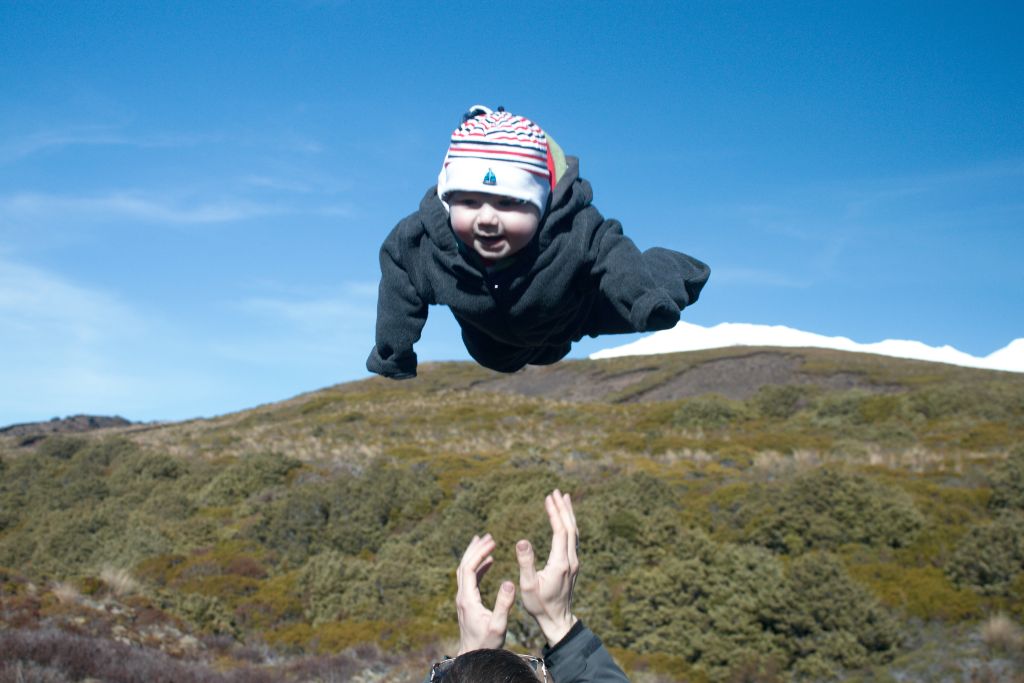 Wenn wir denn dann irgendwann mal ankommen, sagt Papa immer „wir sind zu Hause“. Eigenartiger weise stimmt das auch – egal wie lange wir fahren, ich darf dann erstmal auf immer dem gleichen großen Bett mit dem tollen Ausblick mit der Mama und dem Papa spielen. Die beiden brubbeln dann immer in meinen Bauch, was ganz doll kitzelt. Doch sobald ich dann ihre Haare fest im Griff habe, bin ich derjenige, der zu letzt lacht 😀
