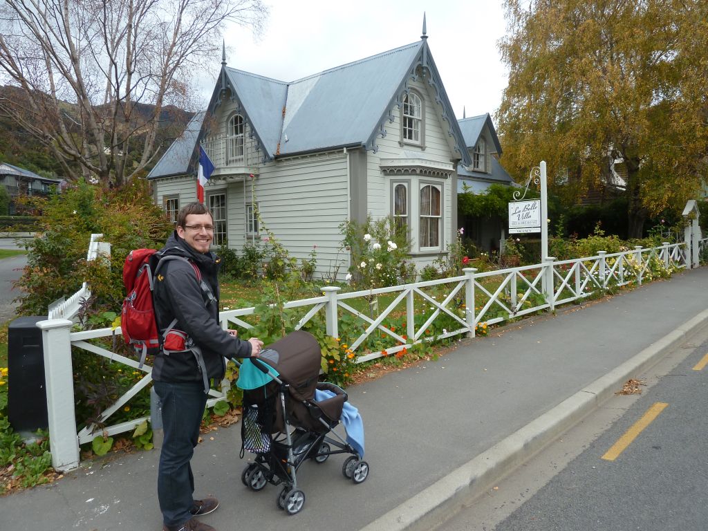 Am Donnerstag hatten wir nun unseren Camper abgeholt. Wir werden nun einen Monat mit einem 6 Bett Mitsubishi Canter unterwegs sein. Wir sind begeistert. Er hat alles was man zum bequemen Reisen braucht – Bett, Sitzecke, Toilette mit Dusche, Herd ( mit Grill& Ofen), Kuehlschrank, Mikrowelle, Heizung (mit Diesel, aber Motor ist nicht dabei an). Besonders gefreut hat uns, dass Flori bei uns vorne sitzen darf. Trotz Kindersitz entgegen der Fahrtrichtung kann er uns gut sehen und wir können ihn während der Fahrt bespaßen. Florian wird sich ganz schön umgucken, wenn er zu Hause dann nicht mehr uns beide ständig um sich hat, nicht mehr in unserem Bett schlafen darf uns im Auto wieder allein hinten sitzen muss 😉 Aber dafür geniessen wir es alle jetzt umso mehr und der Kleine lacht sehr viel. Nach der ganzen Einweisung ging es erstmal zum Supermarkt. Das Links-Fahren ist schon anders aber man gewöhnt sich daran. Da es ausserhalb der wenigen grossen Ortschaften sowieso nur ab und zu Kreuzungen gibt und der Verkehr nur minimal ist, geht das schon. Nachdem wir dann alles Essbare verstaut haben, ging es los Richtung Banks Peninsula – der Halbinsel Süd-Östlich von Christchurch. Da wir uns ohne Navi ( braucht man ja eigentlich nicht, siehe oben) Verfahren hatten, haben wir nur zum Abend einen Stellplatz aber keinen Campingplatz erreicht. Man stelle sich also eine Wiese an einer Landstraße an einem See mit Bergen vor an dem nichts ist außer Schwäne und Enten. Ein bisschen mulmig war uns schon, aber wir waren so müde, dass die Nacht schnell verging. Morgens wurden wir dann von einem Hahn geweckt der ums Wohnmobil lief 🙂