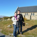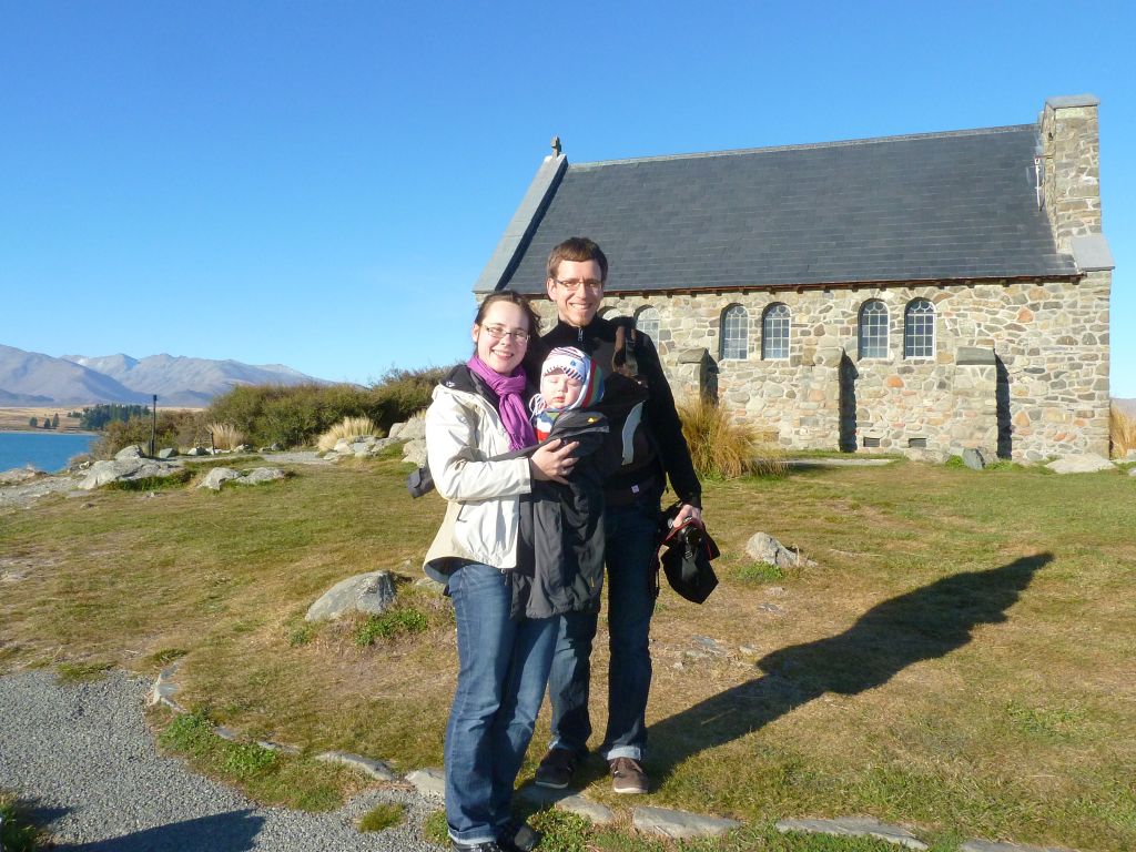 Heute nahmen wir uns vor am Abend am Lake Tekapo zu sein. Einem türkisfarbenen See inmitten von eher kargen Bergen in der Mitte der Südhalbinsel Neuseelands. Da Flori sich jetzt an die Zeitumstellung gewöhnt hat, waren wir auch schon sehr früh auf den Beinen. Wir machten einen Zwischenstpp für eine kurze Wanderung zu einem Wasserfall und waren dann um 15Uhr schon an der Kirche des guten Hirten in Tekapo.