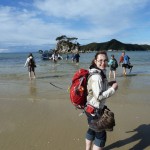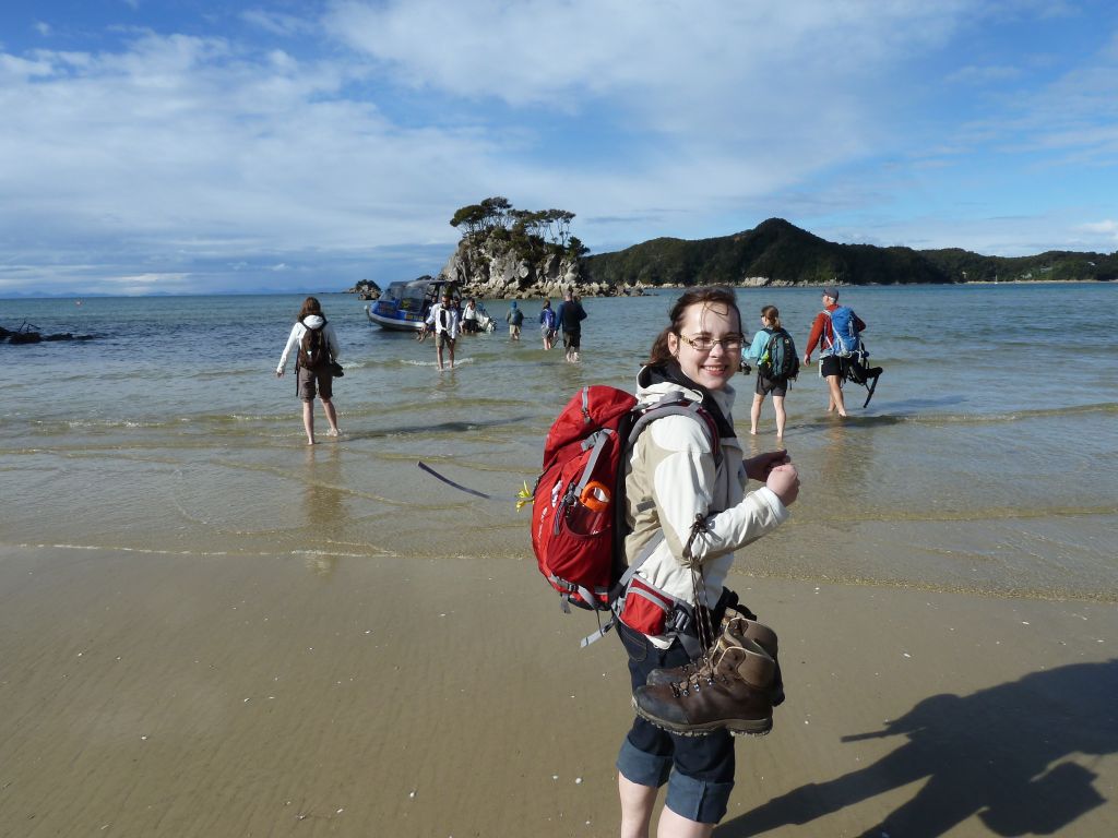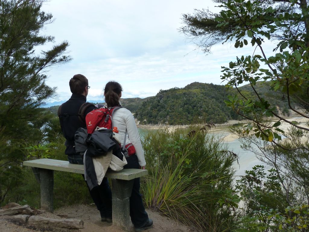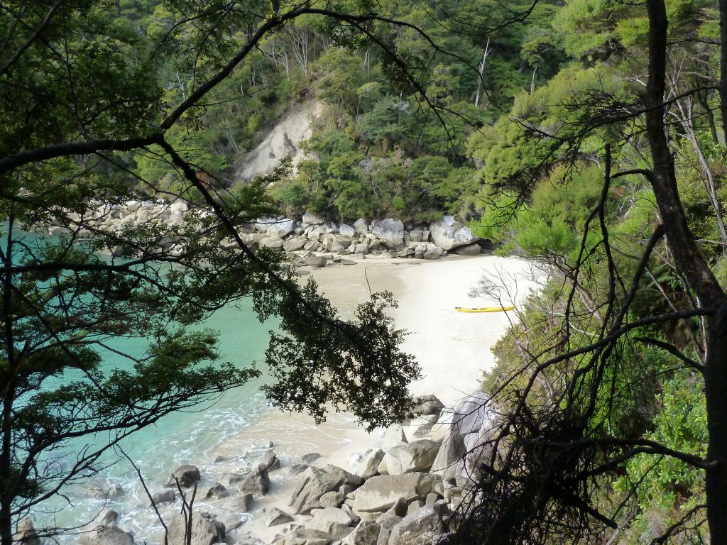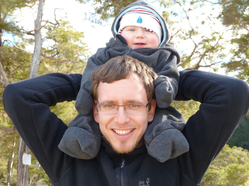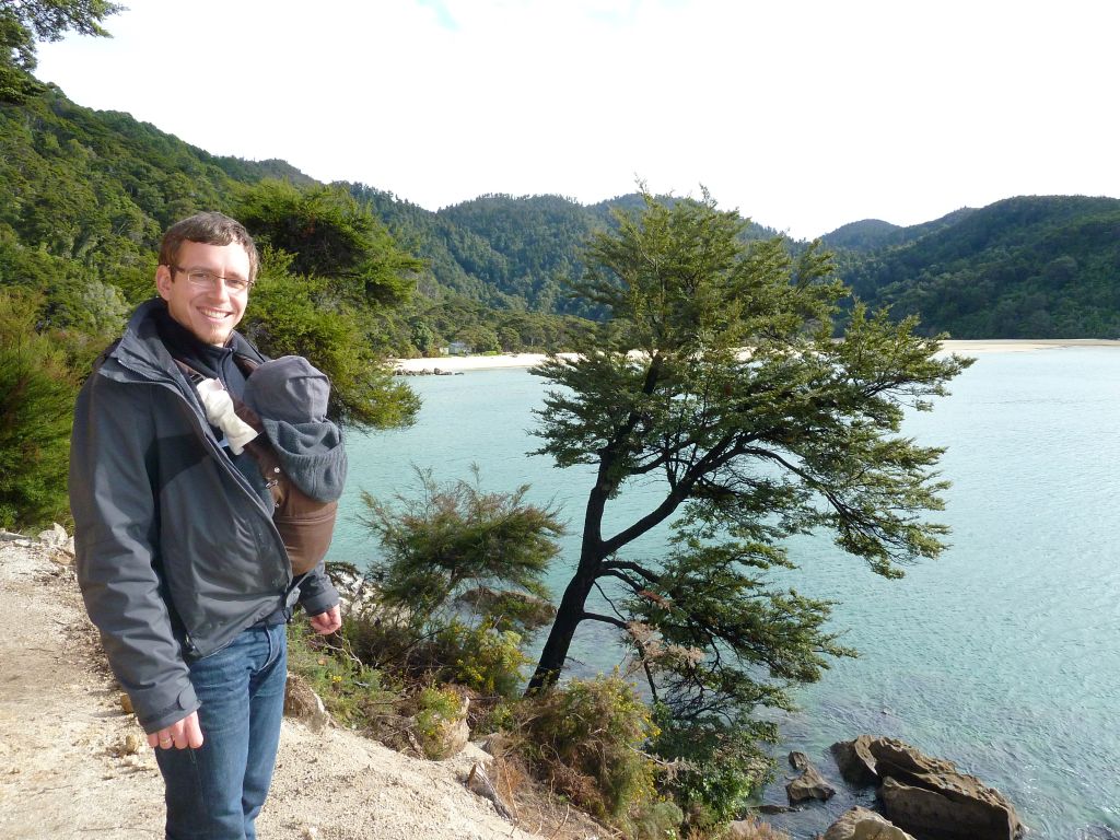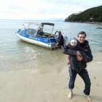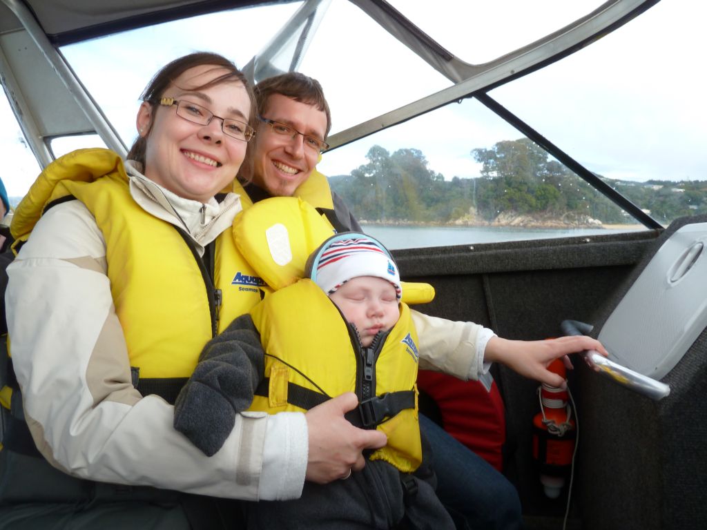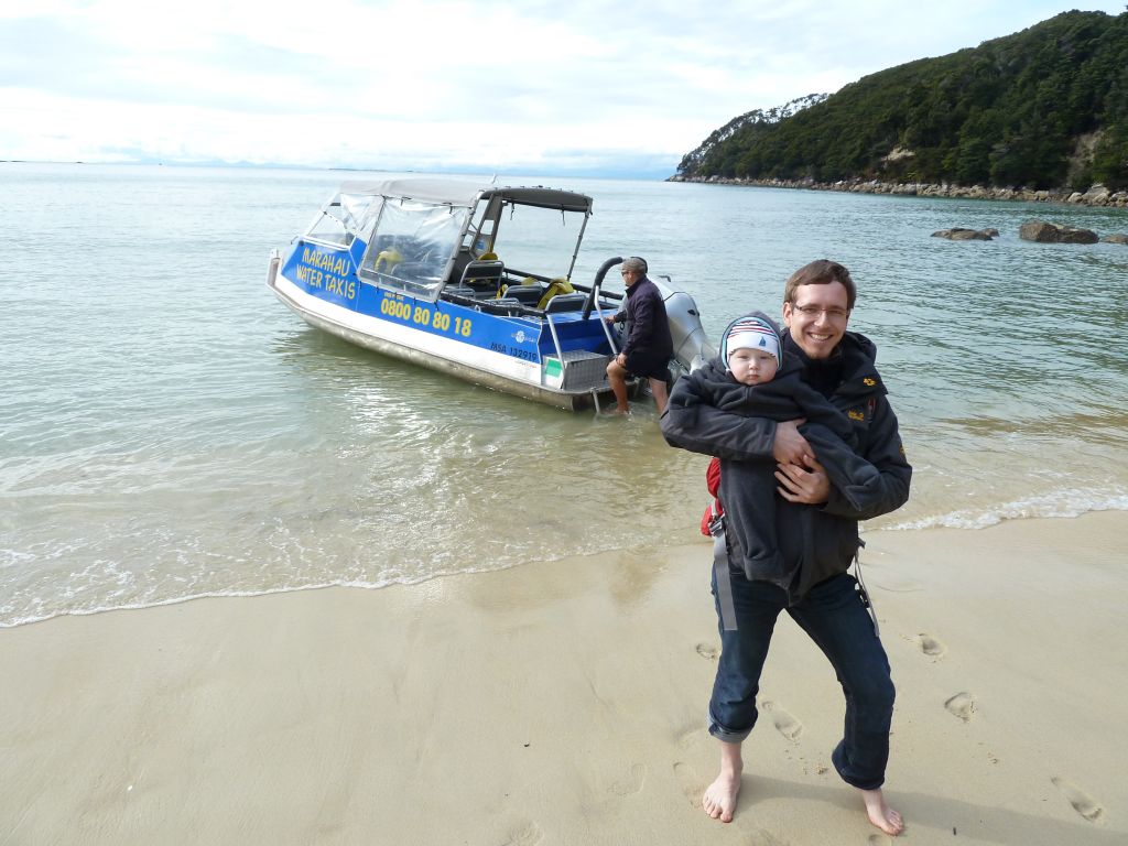 Pünktlich 9:30Uhr fuhren wir heute mit dem Boot zum Strand – ja ihr habt richtig gelesen, wir wurden nämlich erstmal im Boot auf einem Traktor ins Wasser gefahren, damit unsere Füße nicht nass werden 😉 Das wurden sie dann erst als wir 30min später in einer der einsamen Buchten abgesetzt wurden. Doch vorher ging es in dem kleinen Boot mit 10 weiteren Passagieren über kleine Wellenhüpfer vorbei an kleinen einsamen hellen Buchten und Felsen mit Robben. Flori sah in seiner Schwimmweste echt super witzig aus – auch wenn die ihm nicht so gut gefallen hat. In der Bark Bay angekommen, genossen wir noch kurz das – zugegeben recht kalte – Meerwasser zwischen den Zehen und machten uns dann auf die 2 stündige Wanderung zur Torrent Bay. Der Weg führte malerisch im Wechsel durch Regenwald und mit Blick auf die Buchten. Leider war gerade Ebbe und die Buchten zeigten recht wenig vom türkisen Wasser. Trotzdem ein sehr schönes Erlebnis bei einem Sonne Wolken Mix. Florian hat wie so oft erst mal ein Nickerchen beim Papa auf dem Bauch gemacht und dann brabbelnd in die Baum-/Palmenkronen geguckt. Es hat alles gestimmt. Vielleicht sieht man auf den Fotos besser was wir nicht beschreiben können 😉